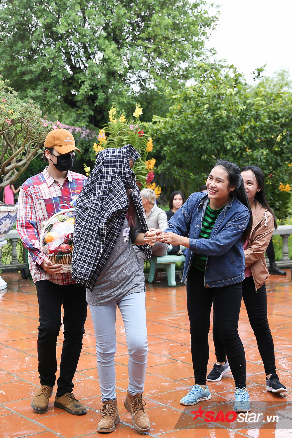 Cặp đôi ăn mặc khá giản dị khi đi cúng Tổ. Mặc dù đã bịt kín mặt nhưng cặp đôi vẫn bị nhiều người nhận ra và níu kéo xin chụp ảnh. Tuy nhiên, Khởi My đã khéo léo từ chối và nhanh chóng vào phía trong đền thờ để làm lễ.