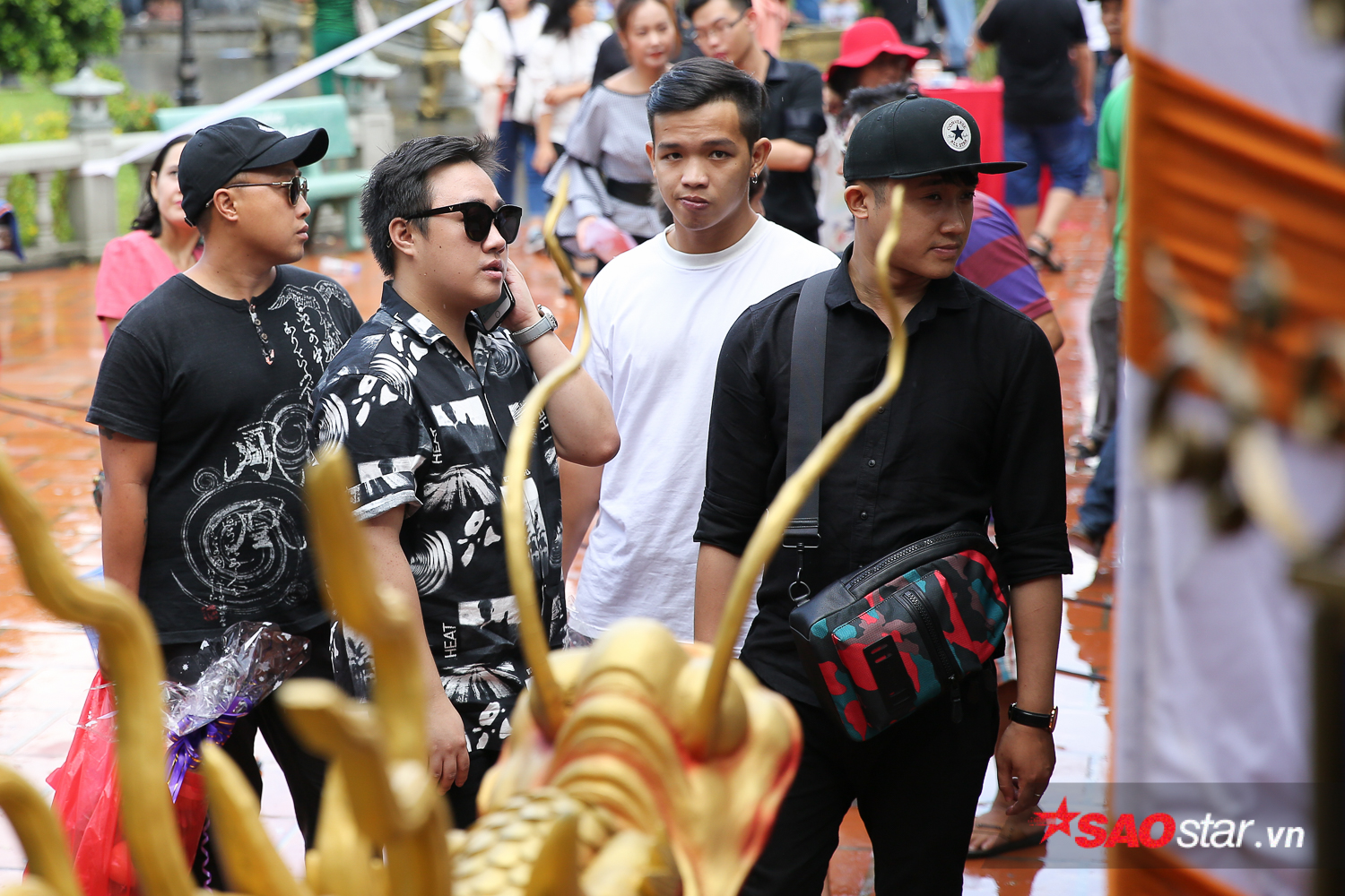 Chiều 1/10, mặc trời mưa khá lớn nhưng nhiều nghệ sĩ vẫn tranh thủ đến thắp hương, dâng lễ vật đi cúng Tổ tại đền thờ của nam danh hài Hoài Linh ở quận 9. TP.HCM, đáng chú ý nhất là sự xuất hiện của Khởi My và Kelvin Khánh.