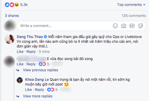 Ngay sau khi chia sẻ, bài viết nhanh chóng nhận được đông đảo sự quan tâm từ dư luận. Đáng chú ý, phía dưới bài đăng, Hoa hậu Đặng Thu Thảo cũng để lại bình luận tỏ ý bênh vực “soái ca khởi nghiệp”.