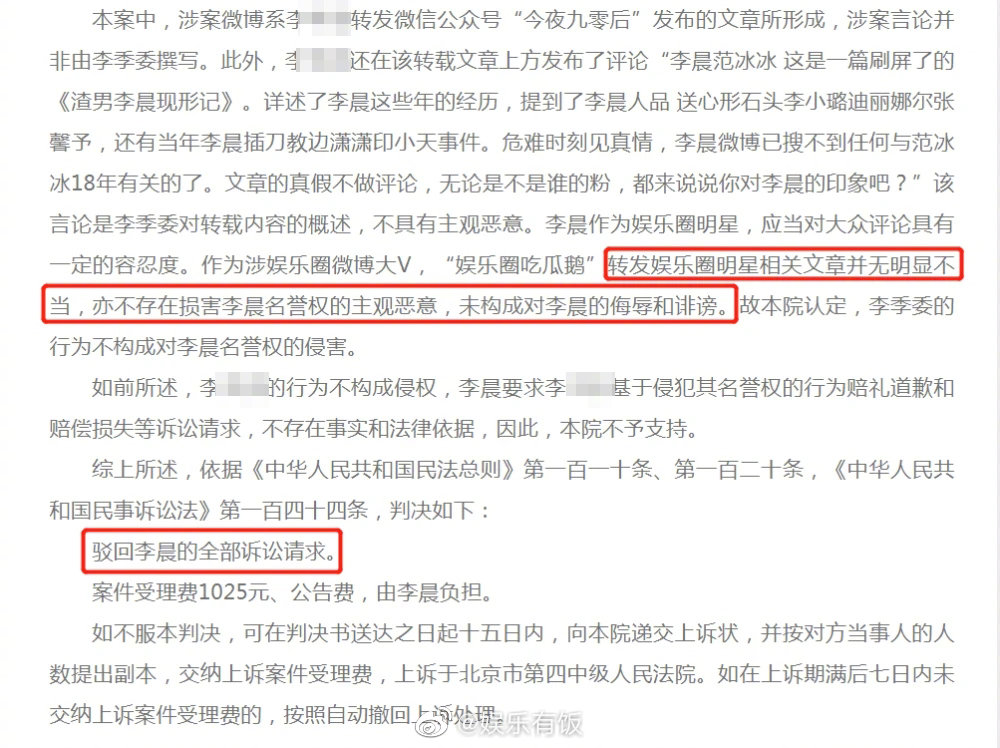 Hôm nay, truyền thông Hoa Ngữ đưa tin Pháp viện Bắc Kinh công bố kết quả vụ kiện giữa Lý Thần và chủ một tài khoản Weibo. Theo đó, lần hiếm hoi trong giới giải trí Hoa Ngữ khi tòa án phán quyết phía nghệ sỹ thua kiện trong vụ khởi tố về quyền xâm phạm danh dự.