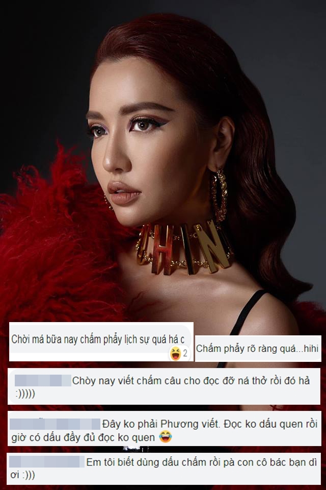 Bích Phương nổi tiếng là ca sĩ không bao giờ dùng đến dấu chấm câu trên mạng xã hội nhưng nay lại trình bày được tâm tình với đầy đủ chấm - phẩy, ngắt nghỉ, viết hoa chỉn chu khiến hội fan vô cùng bất ngờ. Xem ra thời gian tìm hiểu, băn khoăn về các vấn đề xã hội nổi cộm đã giúp nữ ca sĩ hài hước thay đổi chính bản thân mình: sâu sắc hơn và… biết dùng dấu chấm câu.