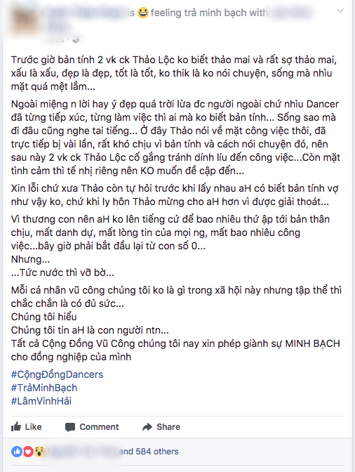 Không ít dancer kêu gọi trả lại minh bạch cho Lâm Vinh Hải.
