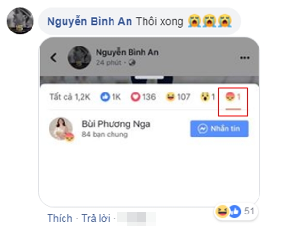 Người duy nhất thả icon “phẫn nộ” vào ảnh của Bình An chính là bạn gái Phương Nga.