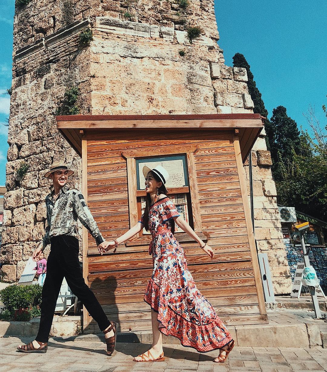 “Cậu” và “Mợ” đã làm cho biết bao con tim phải “tan chảy” vì độ sến súa nhưng cũng hết sức ngọt ngào và dễ thương. Được biết đây là chuyến du lịch mà Phương Nga và Bình An phải trải qua 3 thành phố lớn của Thổ Nhĩ Kỳ bao gồm Antalya, Konya và Istanbul. Trong ngày đầu tiên đôi tình nhân trẻ này đã đến phố cổ Antalya và chọn trang phục kiểu bohemian phóng khoáng để phù hợp với không gian nơi đây.