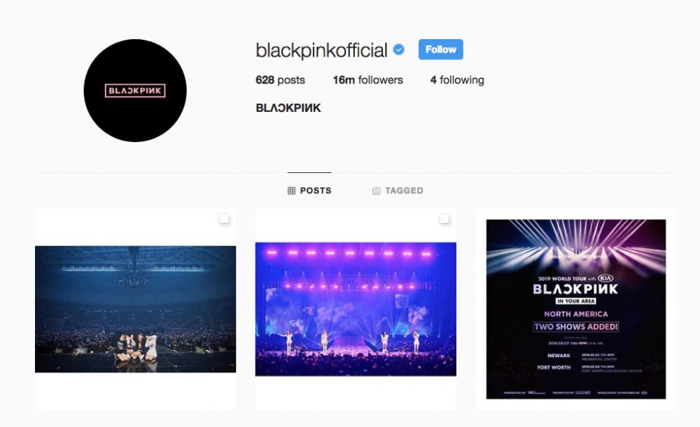Hôm nay, tài khoản Instagram của BLACK PINK chính thức cán mốc 16 triệu lượt người theo dõi. Điều này đã giúp những cô gái YG trở thành nhóm nhạc có lượng theo dõi trên Instagram đứng thứ 2 trên thế giới, chỉ chịu thua đúng tên tuổi lớn One Direction. Nghiễm nhiên, Hắc Hường trở thành “Nữ hoàng Instagram” trong các nhóm nhạc nữ ngày nay.
