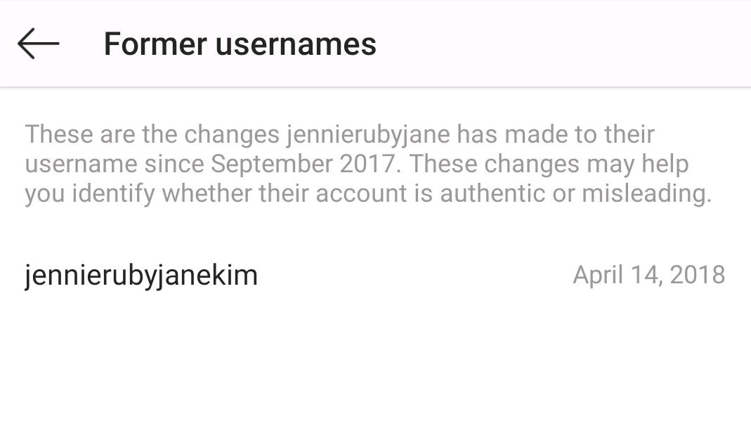 Tên tài khoản hiện giờ của Jennie không có nhiều thay đổi so với cái cô thay đổi vào tháng 4/2018. Thay vì @jennierubyjane như bây giờ, tài khoản của cô nàng là @jennierubyjanekim, Jennie bỏ đi họ của mình.