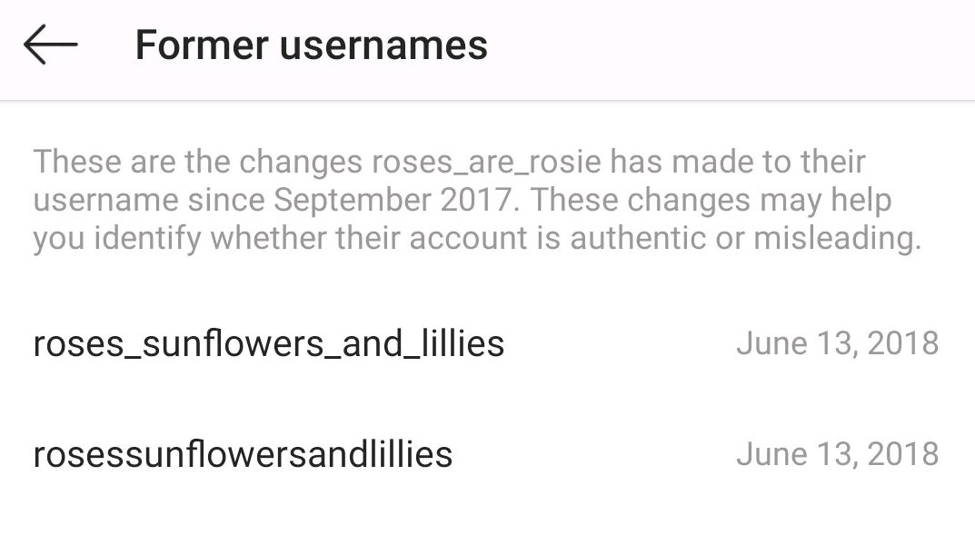 Tên trước kia của Rosé vẫn lấy hoa là chủ đề. Tuy nhiên, không chỉ riêng hoa hồng, giọng ca chính của BLACKPINK cho rất nhiều loài hoa trong vườn vào tên mình như hoa hướng dương, hoa bách hợp. Sau nhiều lần kết hợp các loại hoa lại với nhau, cuối cùng, Rosé quyết định dùng cái tên @roses_are_rosie.