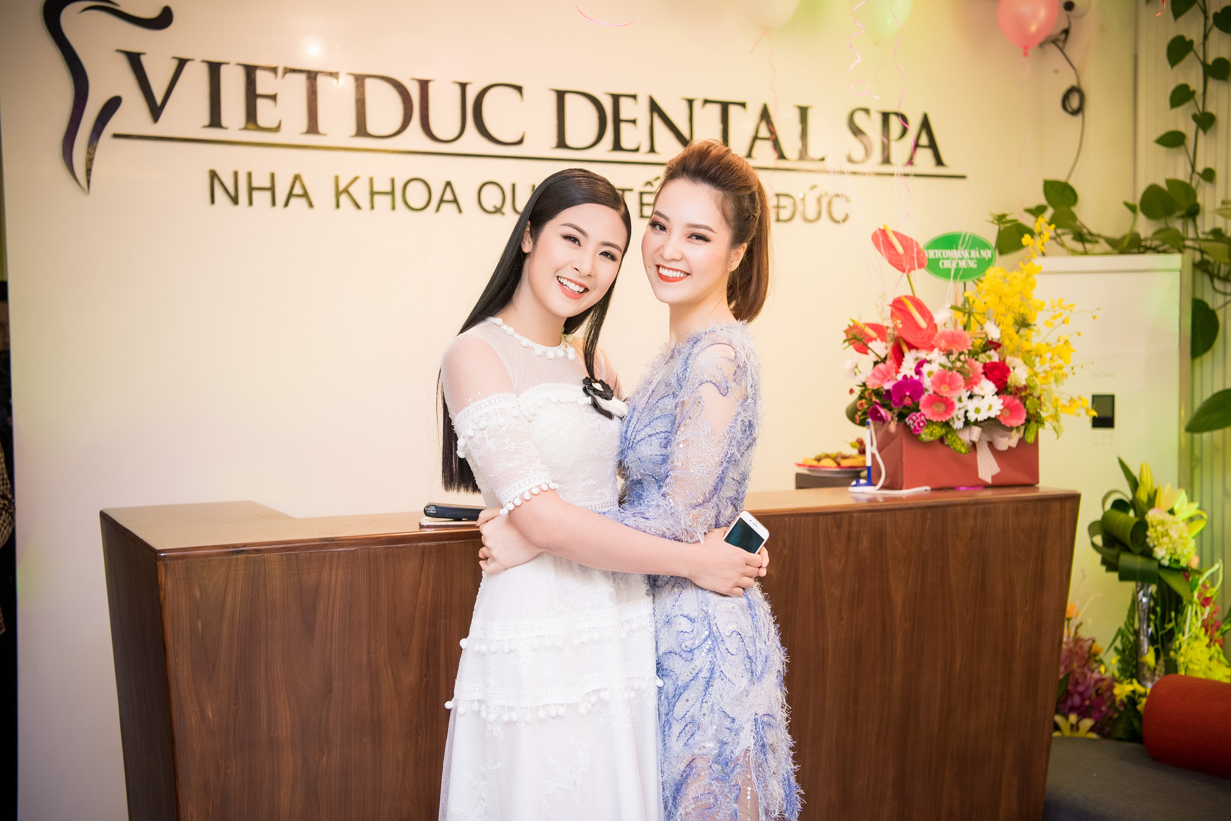 Tối qua, Hoa hậu Ngọc Hân và Á Hậu Thuỵ Vân đã tham dự chúc mừng người anh thân thiết - tiến sỹ, bác sỹ Nguyễn Phú Hoà tại Lễ vinh danh bác sĩ đầu tiên và duy nhất Việt Nam đạt danh hiệu Kim Cương - Invisalign Hoa Kỳ 2017. Đây là một trong những danh hiệu cao quý hàng đầu về công nghệ chỉnh răng bằng khay định hình răng trong suốt invisalign hiện nay trên thế giới. Mặc dù thời tiết Hà Nội khá lạnh xen lẫn những hạt mua phùn, nhưng cả hai vẫn đến rất sớm và vô cùng rạng rỡ chia sẻ niềm vui này với anh và Nha khoa Quốc Tế Việt Đức.
