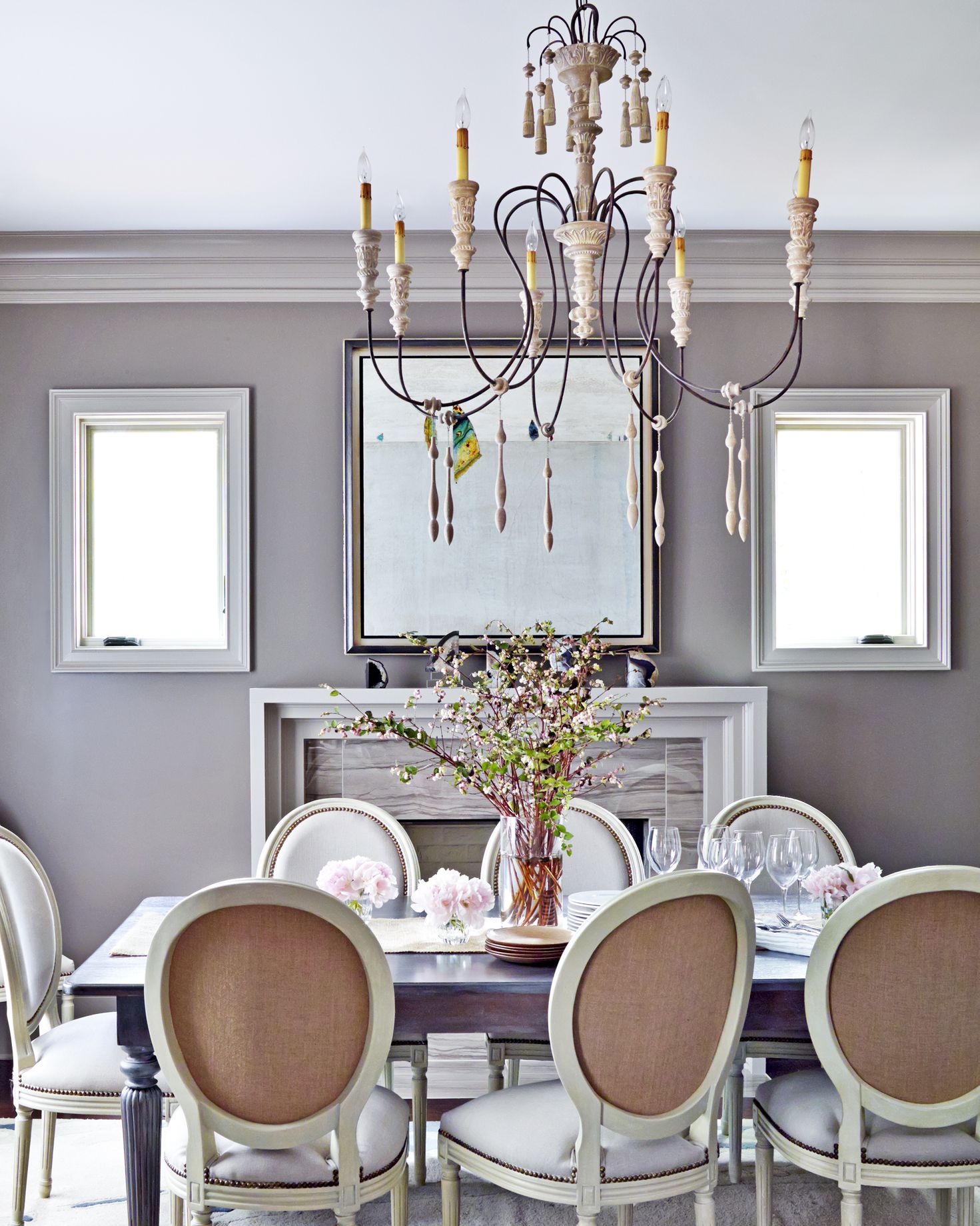 Bức tường màu hoa cà hài hòa với tổng thể đem đến sự cổ điển, nhẹ nhàng cho cả căn phòng.