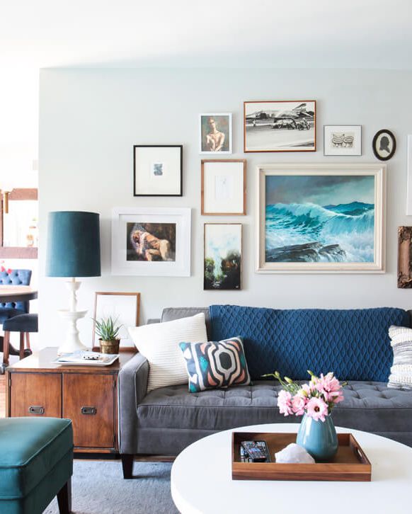 Bạn có nhận ra vật dụng gì màu tím cho căn phòng? Đó chính là chiếc ghế sofa màu tím nhạt được kết hợp tuyệt vời với gam màu xanh mát của căn phòng.