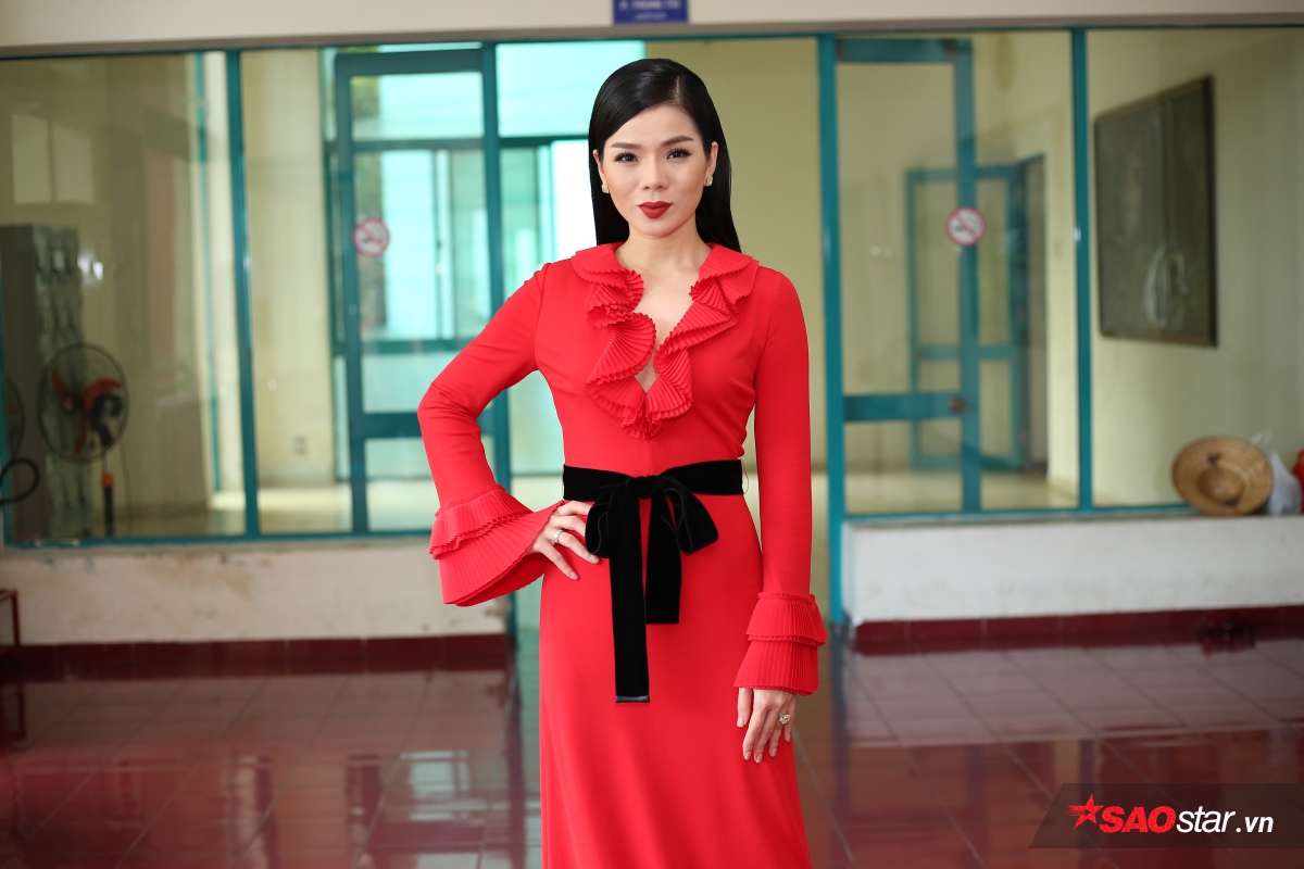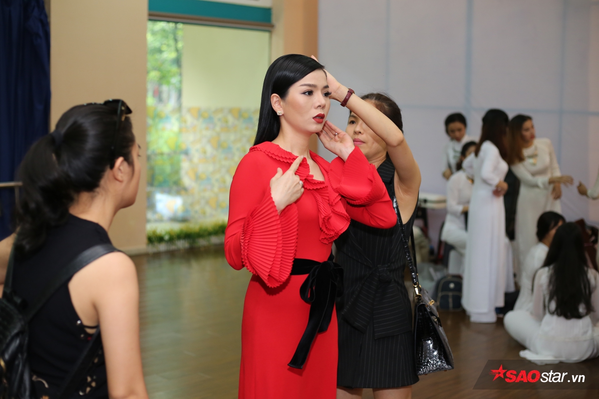 Nữ HLV duy nhất của chương trình chỉnh trang trang phục trước giờ ghi hình.