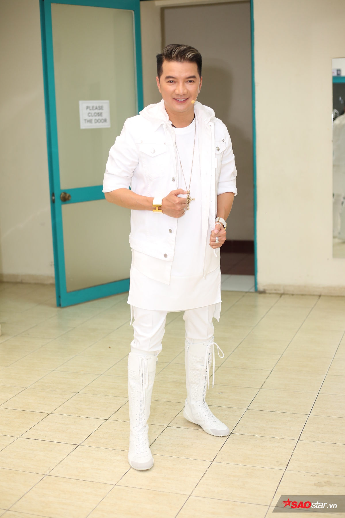 Không giống các HLV còn lại, Đàm Vĩnh Hưng lựa chọn “cây trắng” để xuất hiện tại buổi ghi hình lần này.