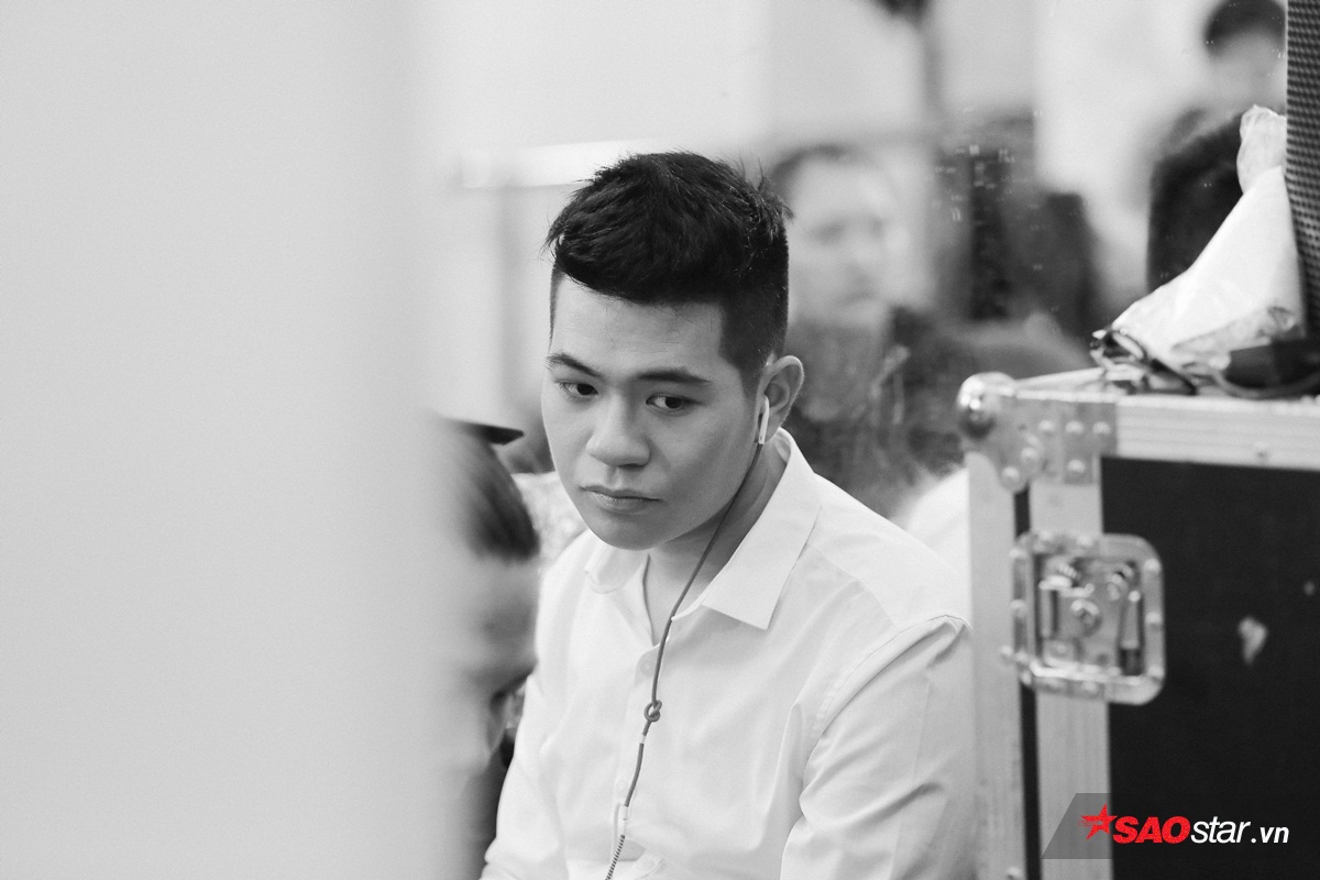 …Ngô Anh Đạt tập trung “dò bài” cho tiết mục của mình.