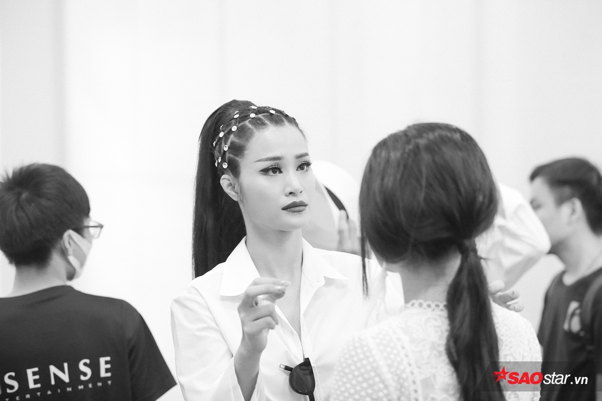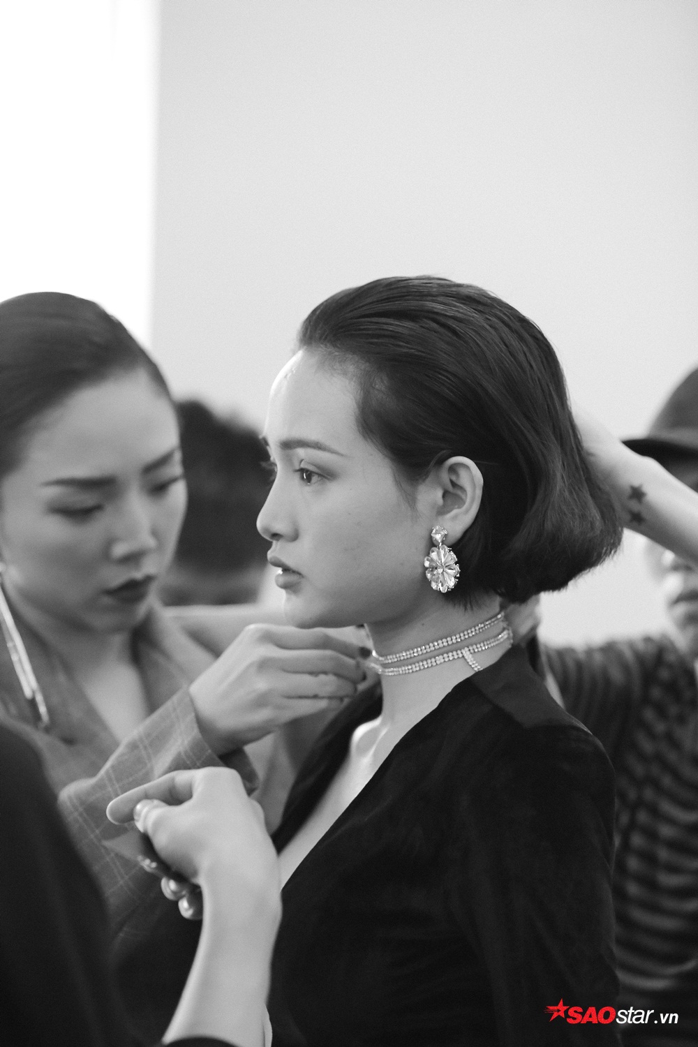 Hansara đang có phần chuẩn bị khá kĩ lưỡng cho bài hát tối nay.