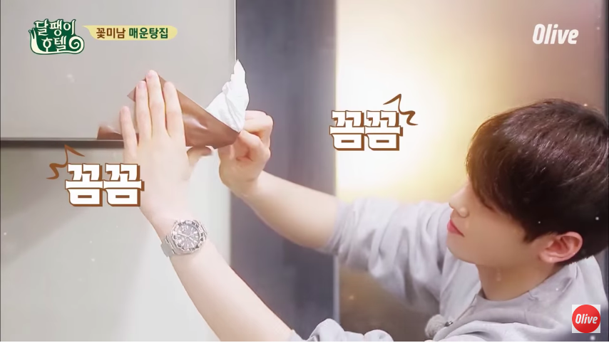Không chỉ được khen ngợi bởi vẻ ngoài mỹ nam Eun Woo còn được yêu mến bởi sự tốt bụng của mình. Trong lúc nấu ăn, để giúp đàn anh Sung Si Kyung tránh va chạm vào những góc sắc bén của máy hút anh chàng đã rất chu đáo lấy giấy và băng dính bọc nó lại.