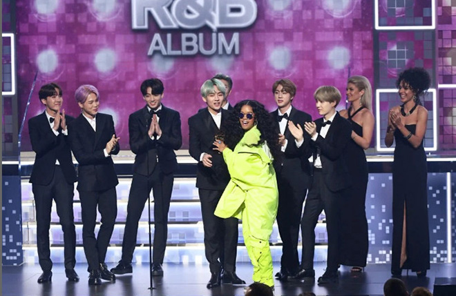 “Thật sự rất vui” Suga nói “Đó là một trải nghiệm đầy thú vị và mới mẻ. Lễ trao giải Grammy chỉ xuất hiện trong giấc mơ của tôi, nhưng giờ nó đã trở thành hiện thực đối với chúng tôi. Chúng tôi rất vinh dự khi được công bố một giải thưởng. Lần tới khi đến đây tôi muốn mình sẽ là người nhận giải”