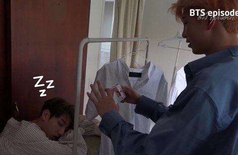 Jimin có lẽ là người hứng thú với việc chụp ảnh em út nhà mình nhất. Đa số những hình ảnh trong mơ đúng nghĩa của Jungkook được tung lên mạng xã hội chủ yếu là nhờ một tay Jimin mà ra. Thậm chí Jimin còn bắt kịp trend “ảnh của ai thì người ấy đẹp”. Không màng đến việc Jungkook đang say giấc nồng, Jimin vẫn chụp ảnh và tạo dáng cực kì đẹp. Ừ thì Jimin đẹp thôi còn Jungkook đã ngủ mất rồi, làm sao mà tạo dáng được nữa cơ chứ!