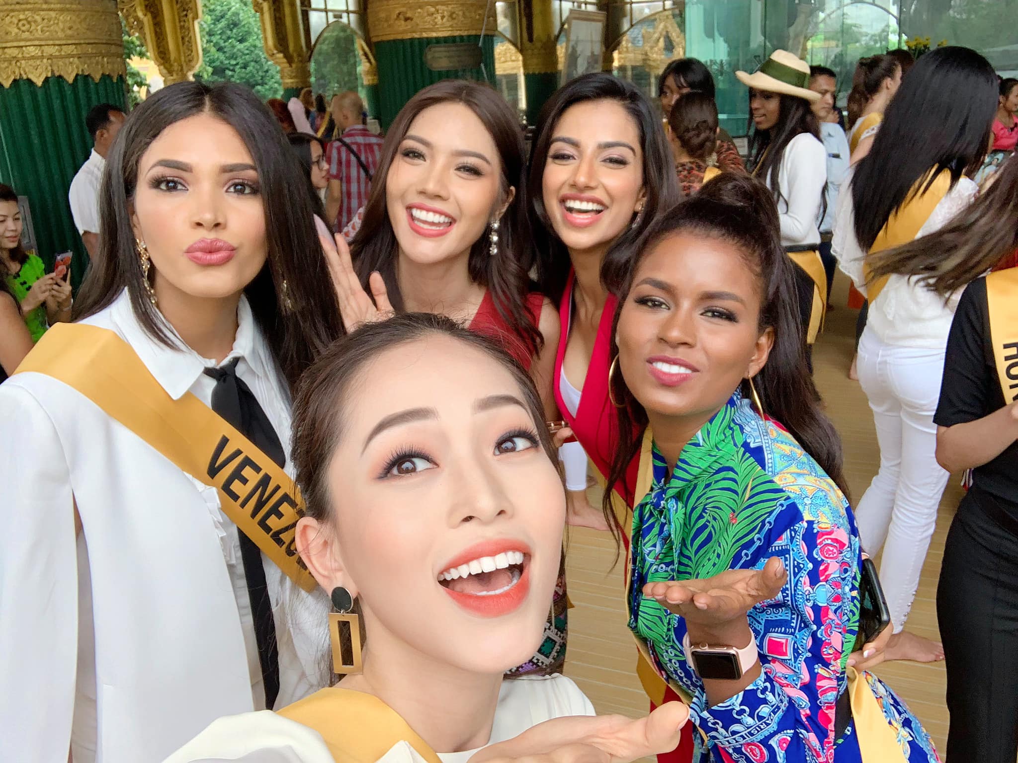 Hôm nay (8/10), cuộc thi Hoa hậu Hòa Bình Quốc tế - Miss Grand International 2018 đã có buổi ra mắt chính thức giới thiệu các ứng viên giành vương miện tân hoa hậu tại Yangon, Myanmar. Trước khi chương trình diễn ra, đại diện Việt Nam Bùi Phương Nga cùng thí sinh đến từ Peru, Paraguay tự tin trả lời phỏng vấn trước ống kính về sự chuẩn bị cho phần xuất hiện của bản thân.