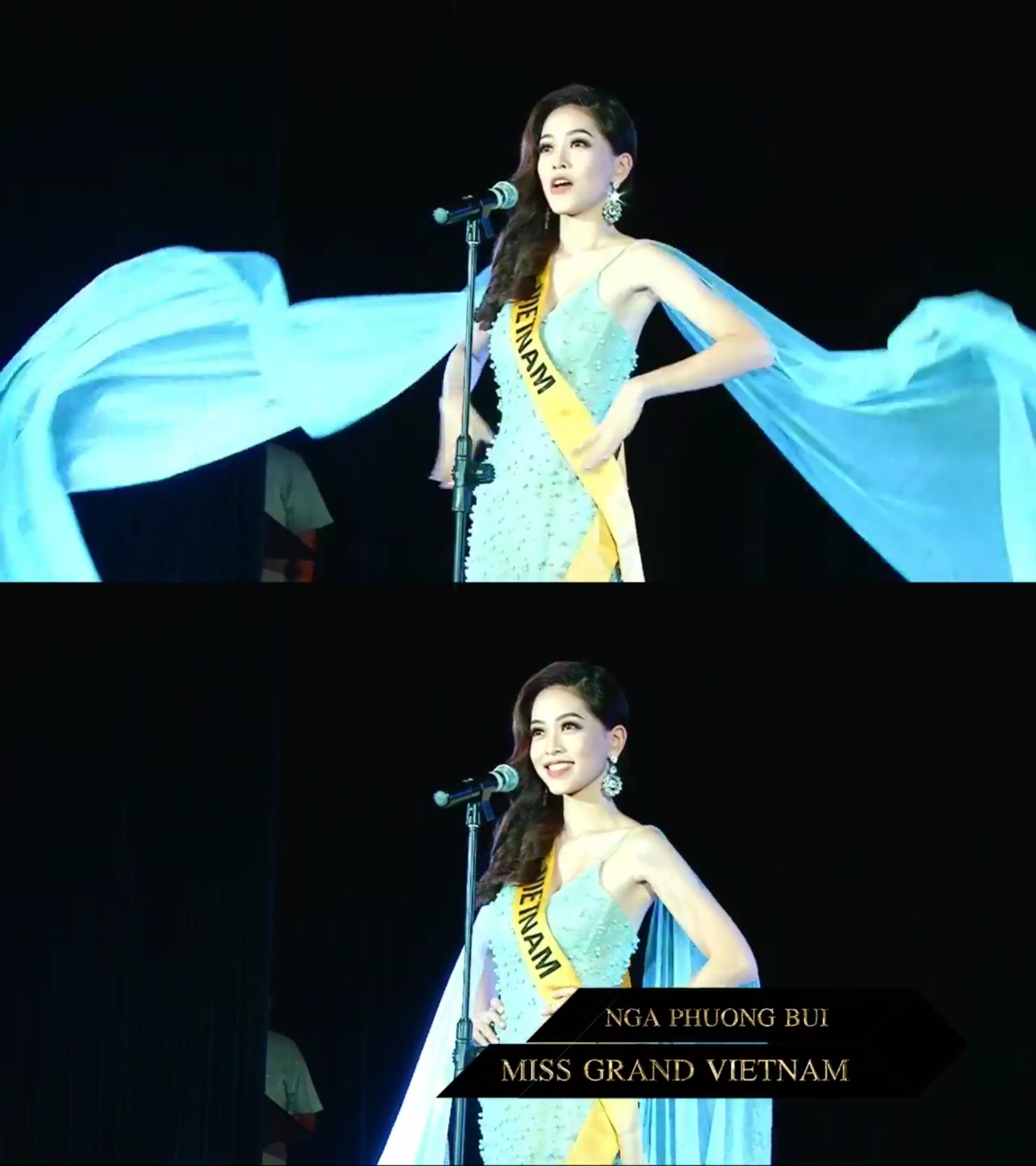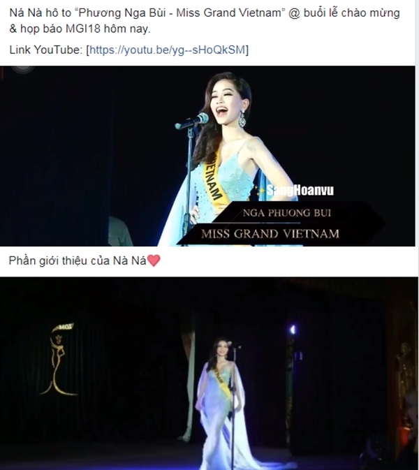 Điều thú vị là ê-kíp chương trình không gọi người đẹp Việt Nam là Phương Nga mà mời “Ná Nà” phát biểu. Hóa ra, “Na Na” là biệt danh của Bùi Phương Nga khiến dân tình quan tâm đến Miss Grand International 2018 thích thú.