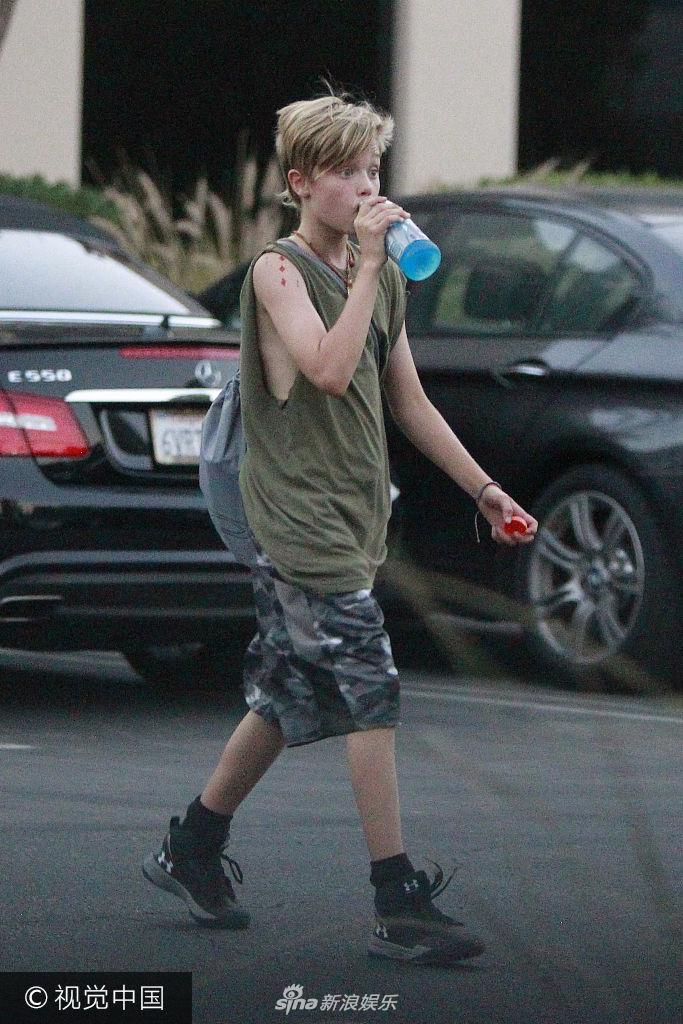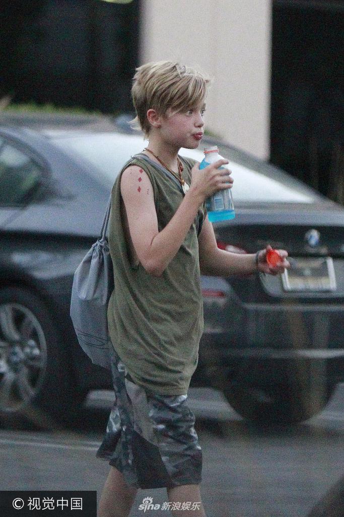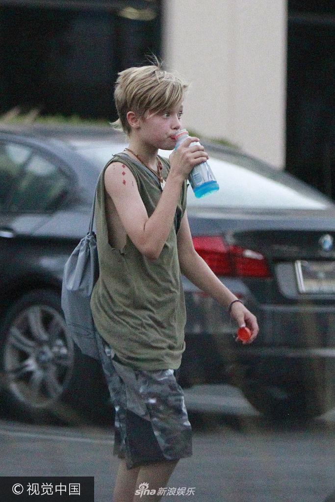 Hôm 28/7, Shiloh Jolie-Pitt - con gái ruột đầu tiên của Brad Pitt và Angelina - được bắt gặp xuất hiện một mình trên đường phố Los Angeles. Với cách ăn vận phóng khoáng, cô bé vừa đi vừa uống nước và có điệu bộ giống hệt một cậu con trai.