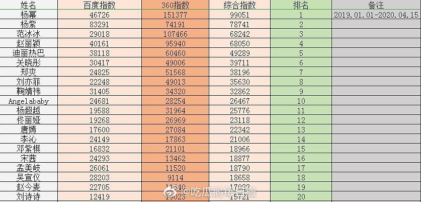 Top 10 Bảng xếp hạng chỉ số các hạng mục (chỉ số baidu + chỉ số 360 + chỉ số tổng họp) gần một năm của các minh tinh nữ:
