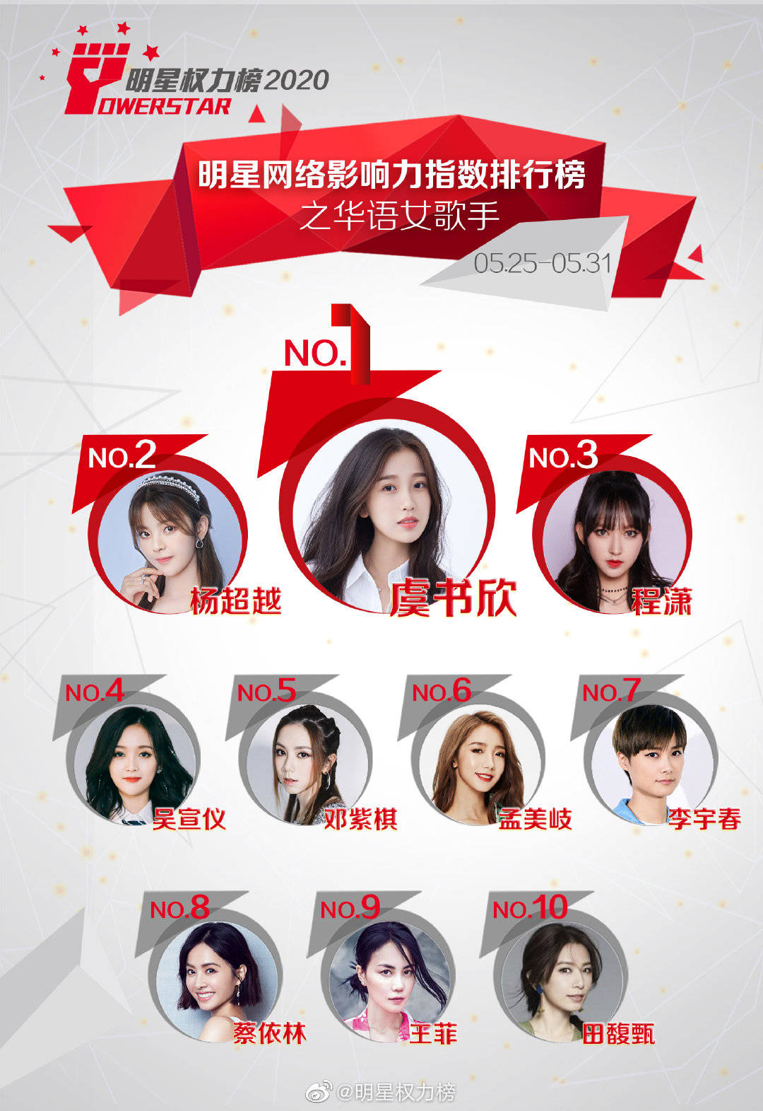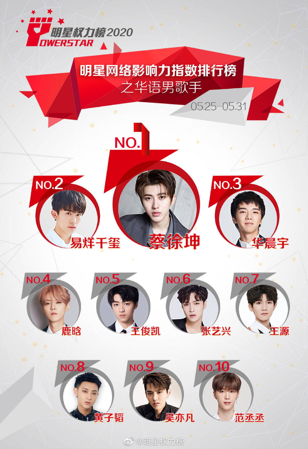 Vào ngày 05/06, Powerstar đã tiết lộ xếp hạng cho những ngôi sao châu Á, người sở hữu chỉ số ảnh hưởng lớn nhất đến công chúng từ ngày 25/05 đến ngày 31/05. Kết quả dựa trên thống kê tương tác, bình chọn từ các phiếu bầu của cư dân mạng, người hâm mộ về độ nổi tiếng và sức ảnh hưởng của các ca sĩ thần tượng trên mạng xã hội Weibo ở Trung Quốc trong một tuần. Theo đó, xếp hạng cuối được công chúng yêu thích nhất như sau: