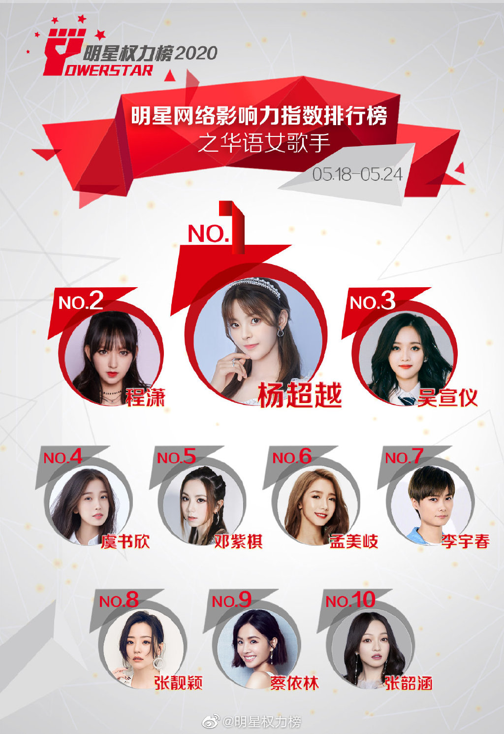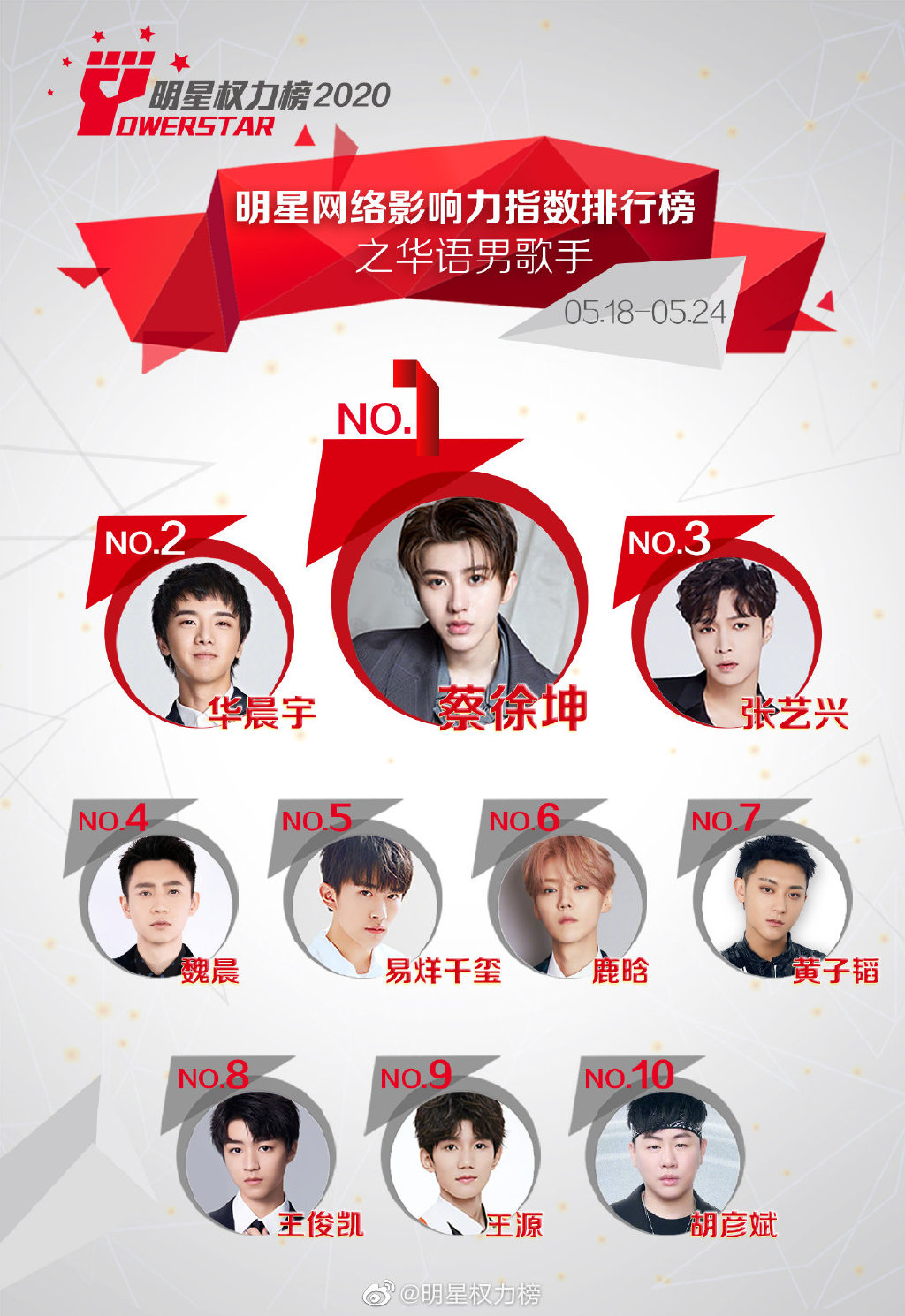 Mới đây, Powerstar đã tiết lộ xếp hạng cho những ngôi sao châu Á, người sở hữu chỉ số ảnh hưởng lớn nhất đến công chúng từ ngày 18/05 đến ngày 24/05. Kết quả dựa trên thống kê tương tác, bình chọn từ các phiếu bầu của cư dân mạng, người hâm mộ về độ nổi tiếng và sức ảnh hưởng của các ca sĩ thần tượng trên mạng xã hội Weibo ở Trung Quốc trong một tuần. Theo đó, xếp hạng cuối được công chúng yêu thích nhất như sau: