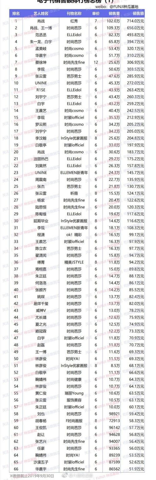 Xếp thứ ba trong bảng xếp hạng lần này là Phạm Thừa Thừa. Nam ca sĩ, diễn viên chính thức bước chân vào ngành giải trí vào tháng 4 năm 2018 với tư cách là thành viên của nhóm nhạc NINE PERCENT sau khi xếp thứ 3 trong chương trình Thần tượng thực tập sinh. Phạm Thừa Thừa đã giúp tạp chí ELLE tiêu thụ lượng lớn với hơn 823 ngàn bản cùng doanh thu 4,9 triệu NDT (15 tỷ đồng).