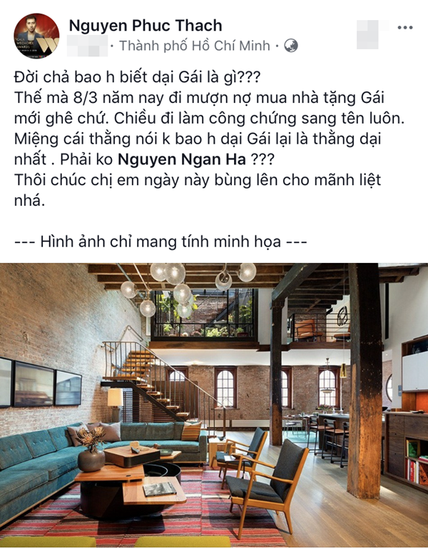 Trong không khí ngày 8/3 khi các đấng mày râu nô nức chuẩn bị quà tặng cũng như những lời chúc tốt đẹp cho hội chị em phụ nữ, ca/nhạc sĩ Only C cũng không ngoại lệ. Mới đây, anh đăng tải status về việc “mượn nợ mua nhà tặng Gái” khiến cư dân mạng vô cùng thích thú và hết lời khen ngợi. Không phải một món quà bình thường mà là hẳn… một căn nhà to đấy nhé!