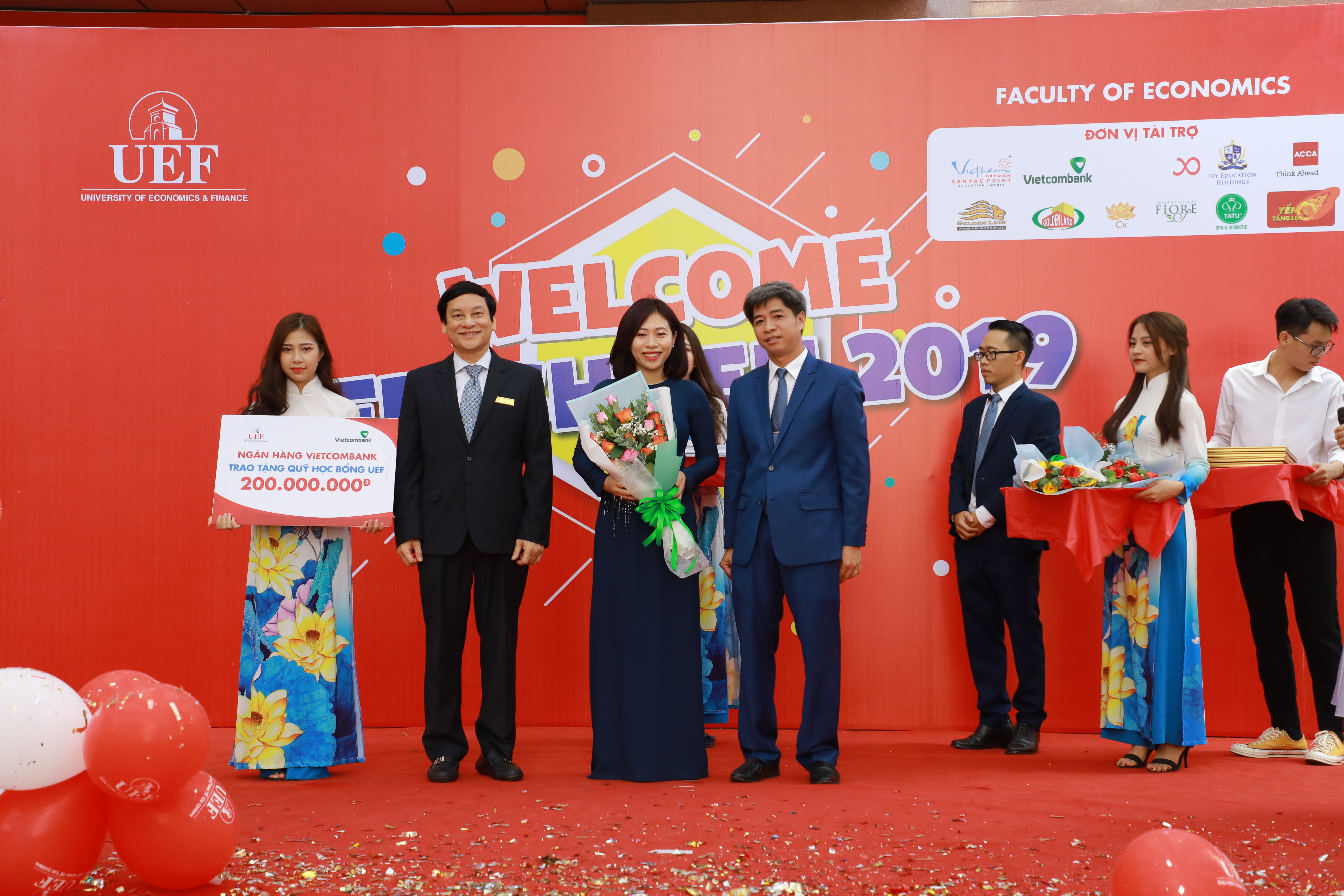 Trong buổi lễ, bên cạnh việc chào đón các bạn là Tân sinh viên của nhóm ngành Kinh tế, Nhà trường và Khoa Kinh tế cũng có các hoạt động vinh danh thủ khoa đầu vào của các ngành, trao học bổng tài năng và đặc biệt đại diện các doanh nghiệp cũng đã trao các suất học bổng cho đại diện của Nhà trường với số tiền trên 1 tỷ đồng.