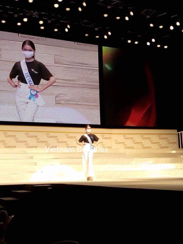 Dù vẫn chưa khỏi hẳn bệnh thủy đậu và phải đeo khẩu trang nhưng Á hậu Thùy Dung vẫn rạng rỡ trong buổi tổng duyệt cho chung kết.