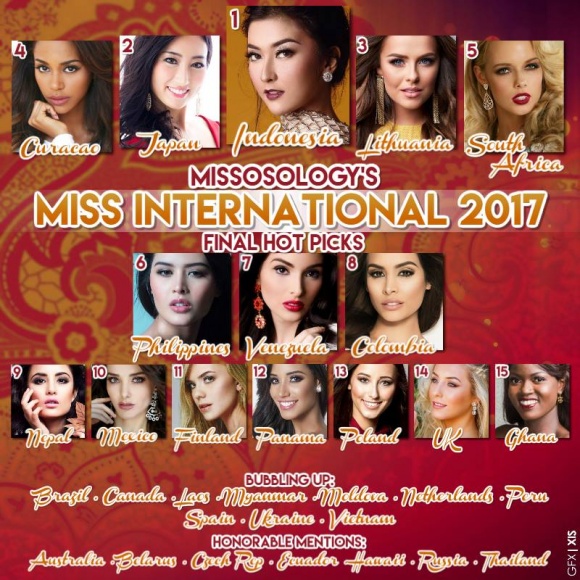 Chiều 14/11, chung kết Miss International 2017 chính thức diễn ra tại Nhật Bản. Trước giờ G, các chuyên trang sắc đẹp lớn như Global Beauties và Missosology có đưa ra bảng xếp hạng những thí sinh xuất sắc nhất tại đường đua nhan sắc này. Và kết quả đáng buồn khi Á hậu Thùy Dung - đại diện của Việt Nam đều mất hút trong top 15 mà các chuyên trang này công bố.
