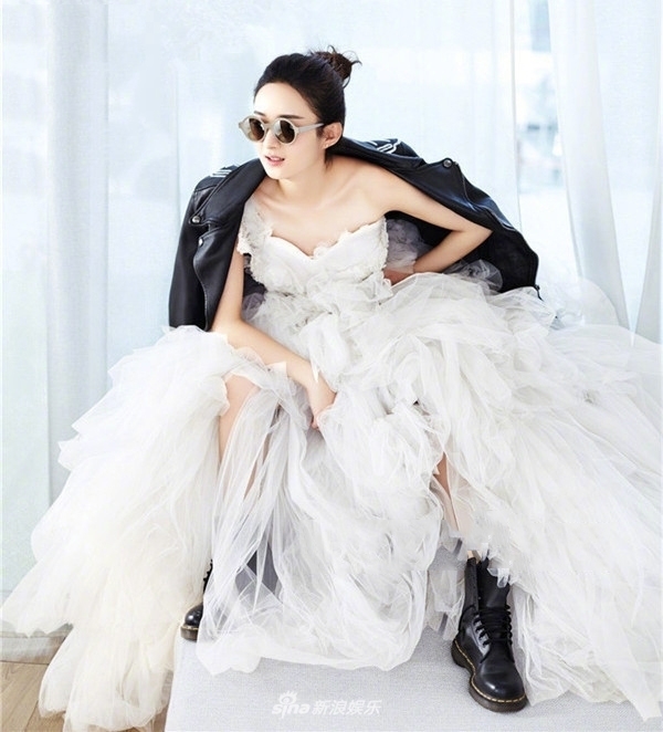 Triệu Lệ Dĩnh cùng từng gây sốt vì cách phối váy cưới “không giống ai” của mình. Thay vì đi giày cao gót thì cô nàng đã phá cách và sử dụng đôi boot đen cao cổ vô cùng cá tính