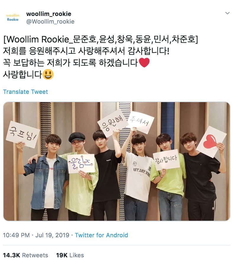 6 chàng trai đã bày tỏ lòng biết ơn của họ bằng cách giơ những tờ giấy viết lời cảm ơn đến khán giả. Bài viết cũng bày tỏ sự yêu thương mà họ dành cho các fan. Cùng chờ đợi những bước tiến mới của các chàng trai Woollim nhé!