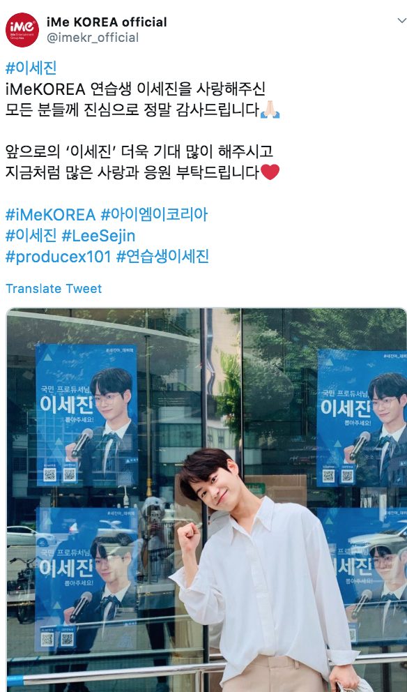 Cũng như các công ty khác, iME Korea cho biết: “Chúng tôi xin chân thành cảm ơn tất cả những người hâm mộ đã yêu mến Lee Se Jin. Xin hãy chờ đón những hoạt động sắp tới của Lee Se Jin, chúng tôi hy vọng các bạn sẽ tiếp tục yêu thương và ủng hộ anh ấy“.
