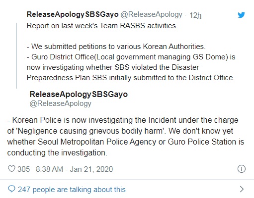 Tuy nhiên, một tháng đã trôi qua, fans vẫn chưa nghe tin gì từ SBS cũng như kết quả cuộc điều tra. Đó là lý do họ muốn cảnh sát Hàn Quốc vào cuộc.