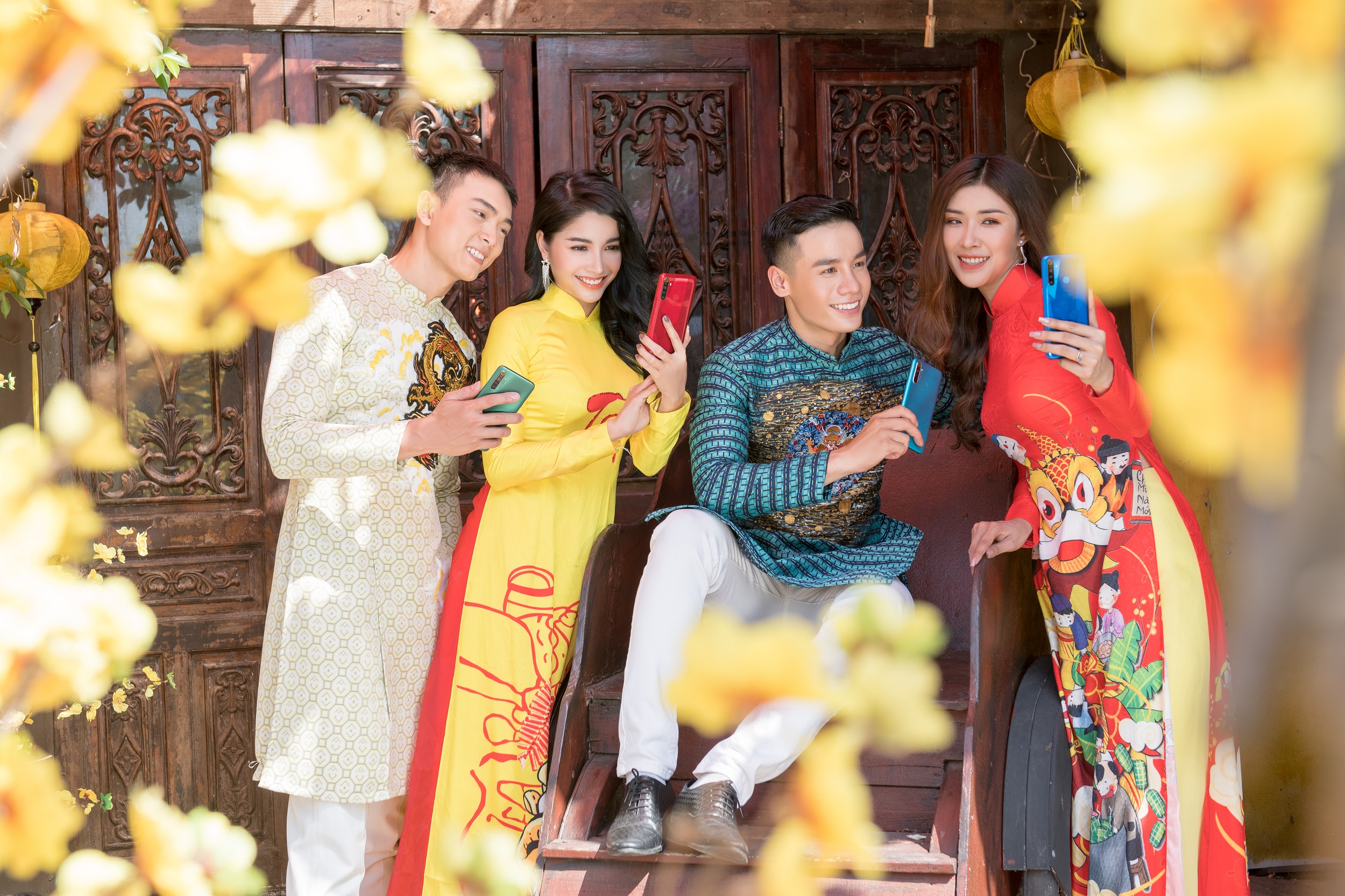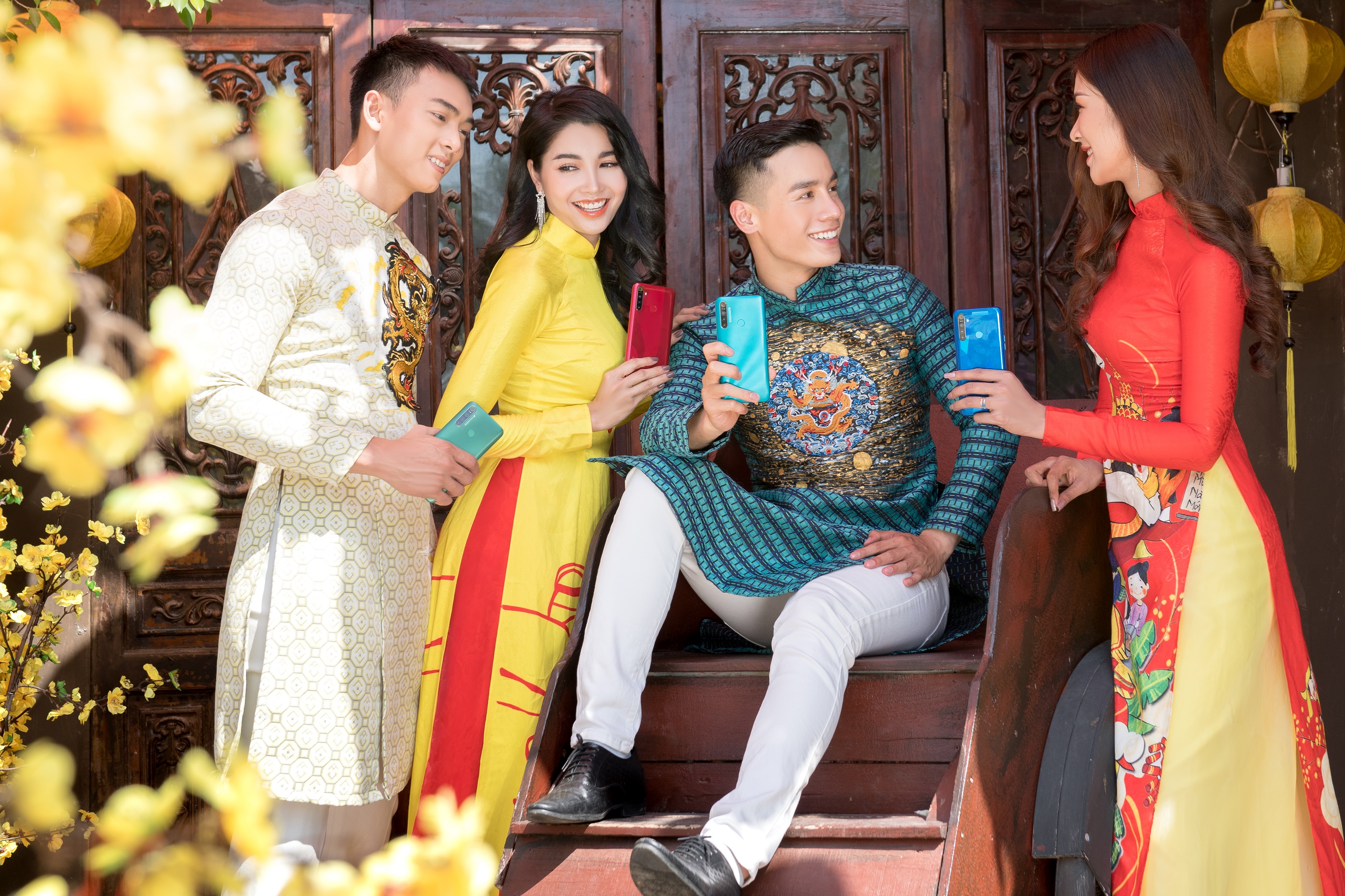 Không bỏ lỡ bất kỳ khoảnh khắc rực rỡ nào của ngày đầu năm mới, bộ bốn Nam vương Thế giới Cao Xuân Tài, Hoa hậu Du lịch Thế giới Việt Nam Tường Vy, Nam vương Thế giới Việt Nam Tạ Công Phát, Á hậu Châu Á Quốc tế Tôn Tuyền đã sắm ngay những chiếc điện thoại dễ thương dáng yêu nhất của nhà Realme để cùng nhau chụp những bức ảnh ngày Xuân lung linh xinh xắn để khoe ngay cùng bạn bè.