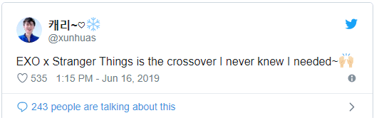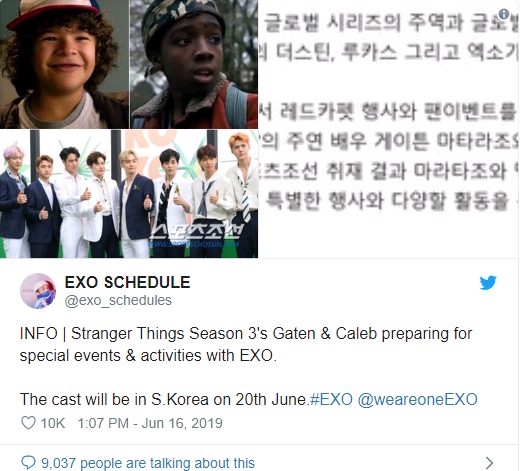 Có vẻ như EXO cũng rất háo hức với việc hợp tác, như Caleb đề cập thì họ sẽ gặp gỡ với các fan của Stranger Things.