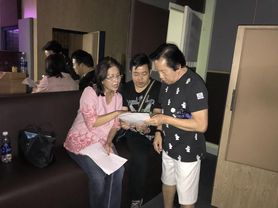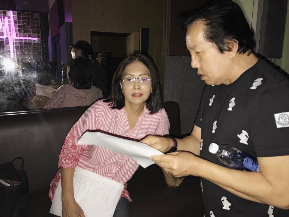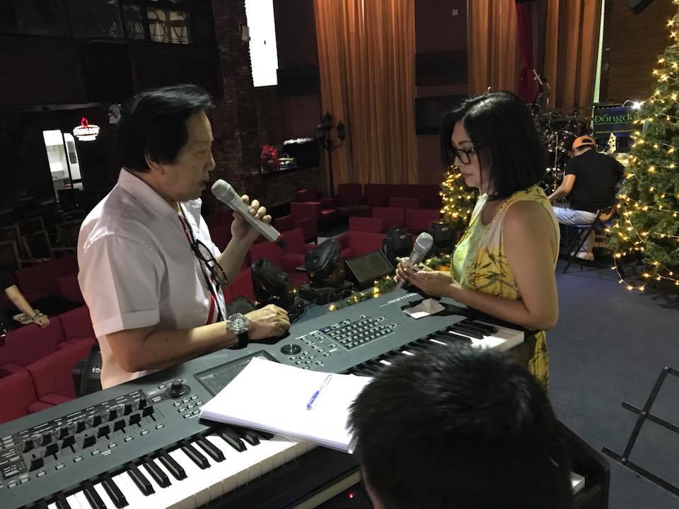 Hai danh ca tranh thủ tập luyện cùng Quang Lê.