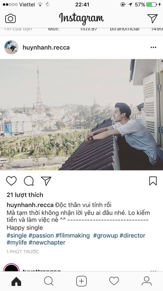 Dòng chia sẻ của Huỳnh Anh trên Instagram.