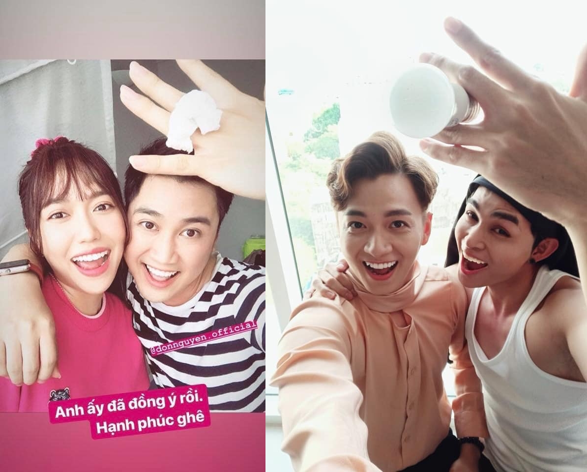 Ngày 9/7, nữ ca sĩ Đông Nhi bất ngờ chia sẻ trên trang cá nhân hình ảnh cô nàng được bạn trai Ông Cao Thắng cầu hôn sau 10 năm yêu nhau. Hình ảnh huấn luyện viên Giọng hát Việt 2017 hạnh phúc khoe chiếc nhẫn đính ước với các fan trở thành cảm hứng cho nhiều nghệ sĩ trẻ “cosplay” ý tưởng chụp ảnh cùng đồng nghiệp và khoe hàng loạt “kỷ vật tình yêu” ngộ nghĩnh.