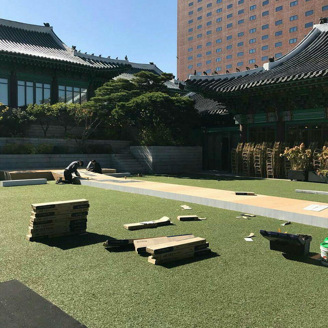 Chỉ có vài người được giao trọng trách chuẩn bị, thậm chí khách sạn Shilla còn căng bạt trên mái để tránh phóng viên.