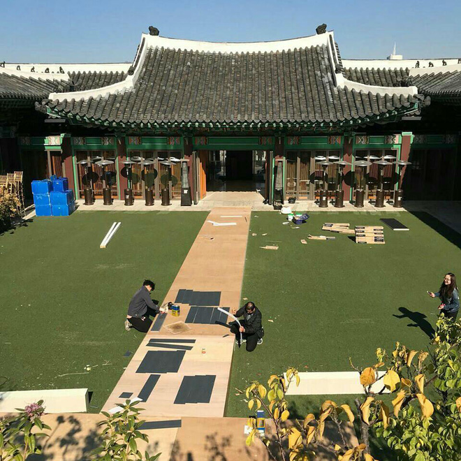 Chiều 30/10, các công nhân mới bắt tay vào trang trí cho đám cưới đình đám của cặp đôi Song Joong Ki - Song Hye Kyo. Một vài hình ảnh hiếm hoi đã được những người thực hiện chia sẻ trên mạng xã hội.