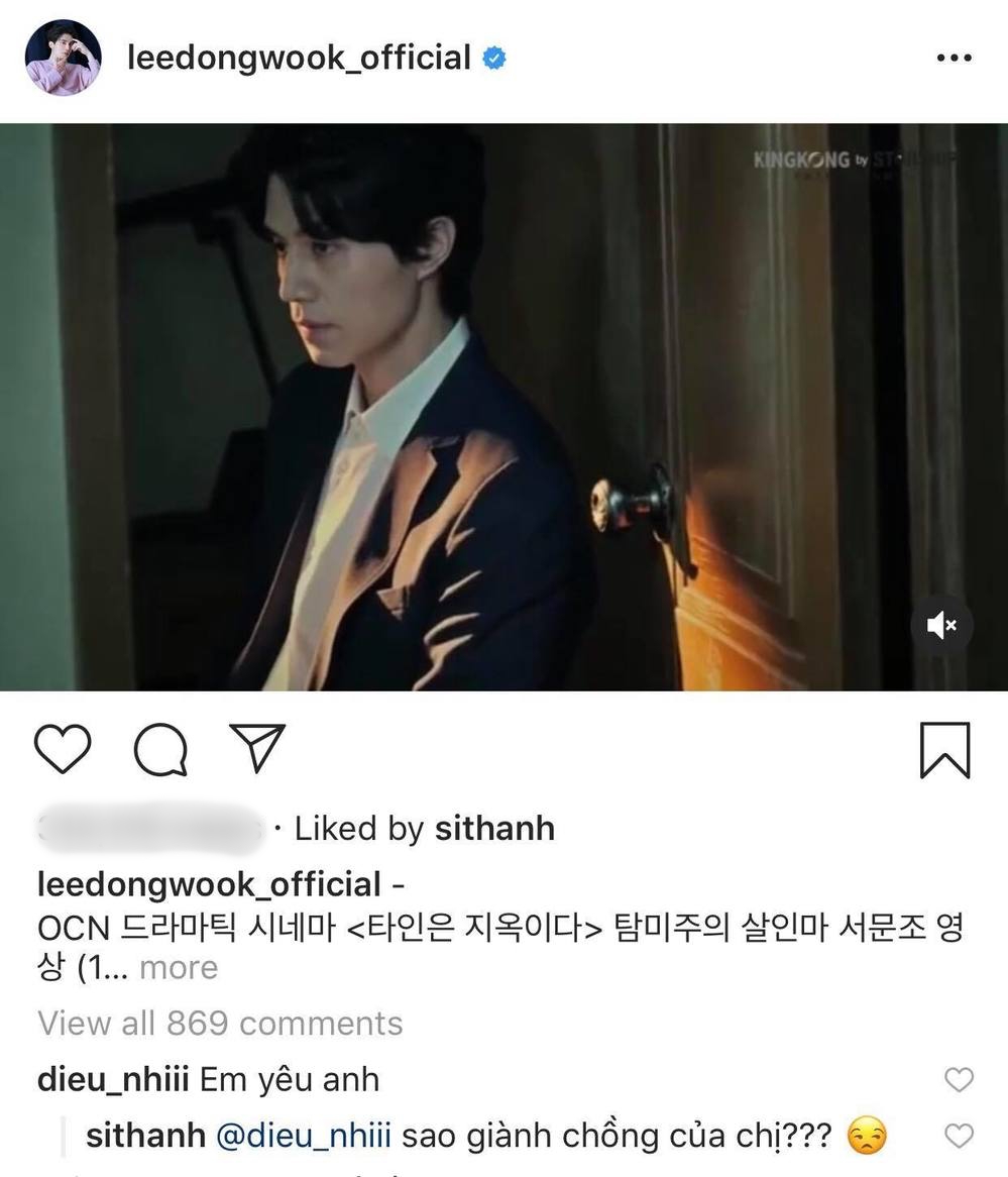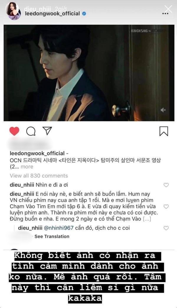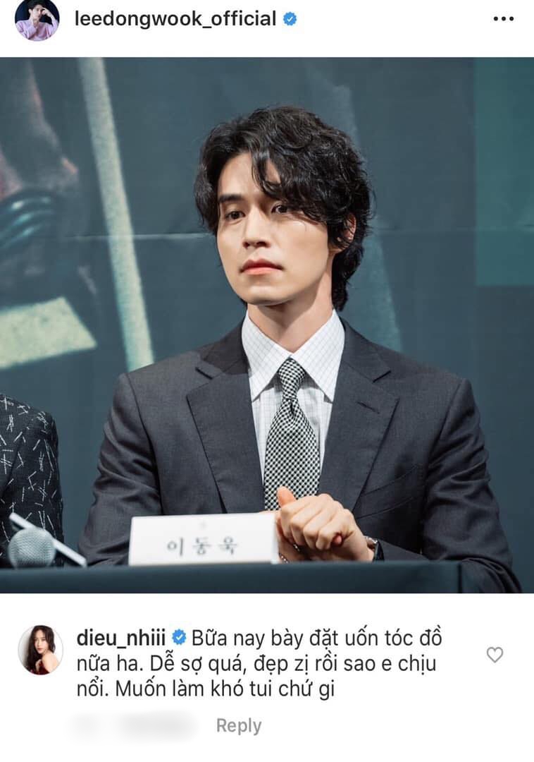 Diệu Nhi để lại bình luận trên instagram của Lee Dong Wook.