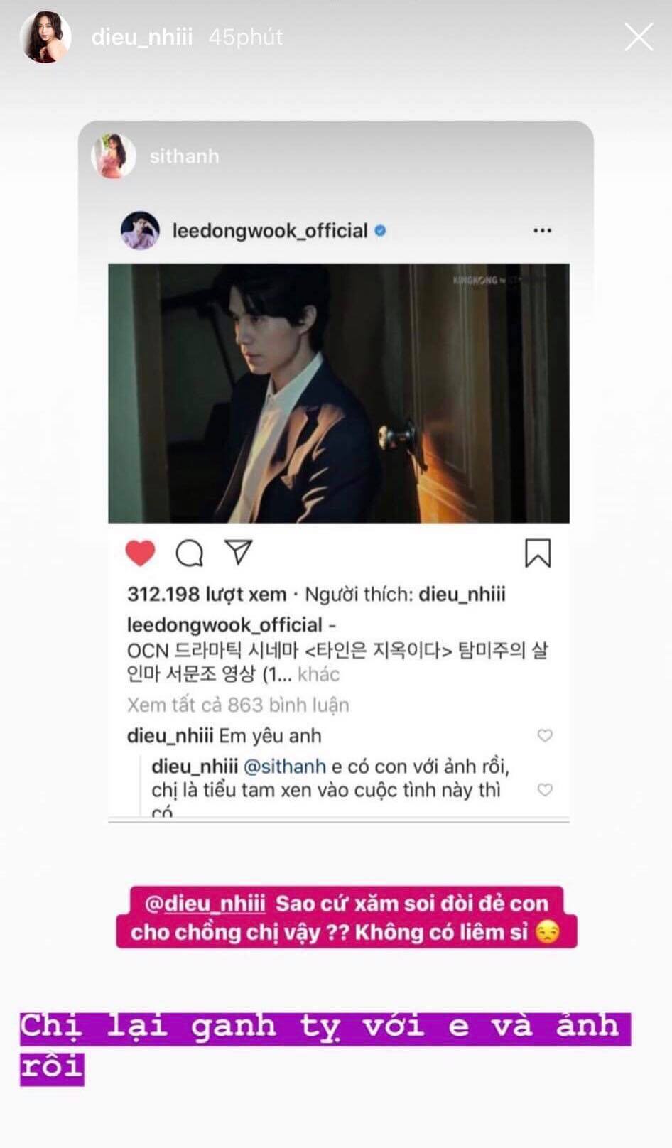 Mới đây, cuộc “khẩu chiến” tưng bừng giữa đôi bạn thân Diệu Nhi và Sĩ Thanh trên mạng xã hội không khỏi khiến cư dân mạng bật cười thích thú. Số là cả hai nàng đều cố tranh giành nam tài tử Hàn Quốc Lee Dong Wook… là chồng của mình. Diệu Nhi không ngần ngại để lại bình luận trên trang instagram cá nhân của anh với những lời lẽ ngọt ngào như một cặp đôi thật sự: “Bữa nay bày đặt uốn tóc đồ nữa ha. Dễ sợ quá, đẹp vậy rồi sao em chịu nổi. Định làm khó tui hay gì?”, “Em yêu anh”, “Nhìn em đi anh ơi”,… Thậm chí nữ diễn viên Vu Quy đại náo còn mạn dạn tuyên bố: “Tầm này thì cần liêm sỉ gì nữa“.