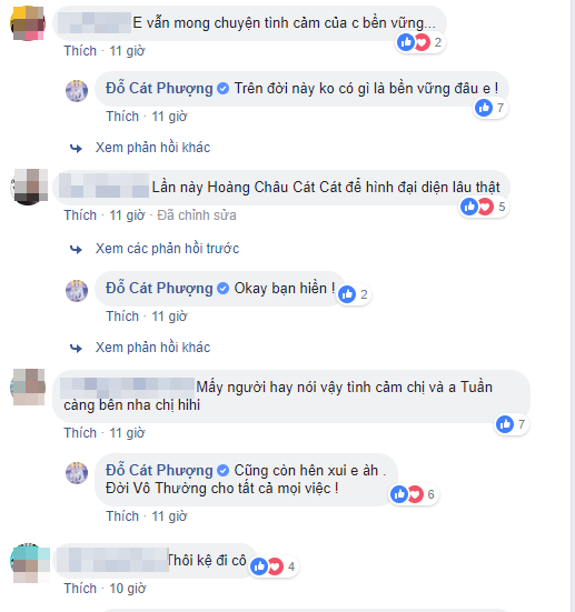 Lời chia sẻ khiến nhiều người hết sức lo lắng. Khi những lời chia sẻ từ người hâm mộ nói rằng đó chỉ là tin đồn nhảm thì Cát Phượng lại khiến mọi người thực sự ngờ vực hơn khi nói “Cũng hên xui em à. Đời vô thường cho tất cả mọi việc”.