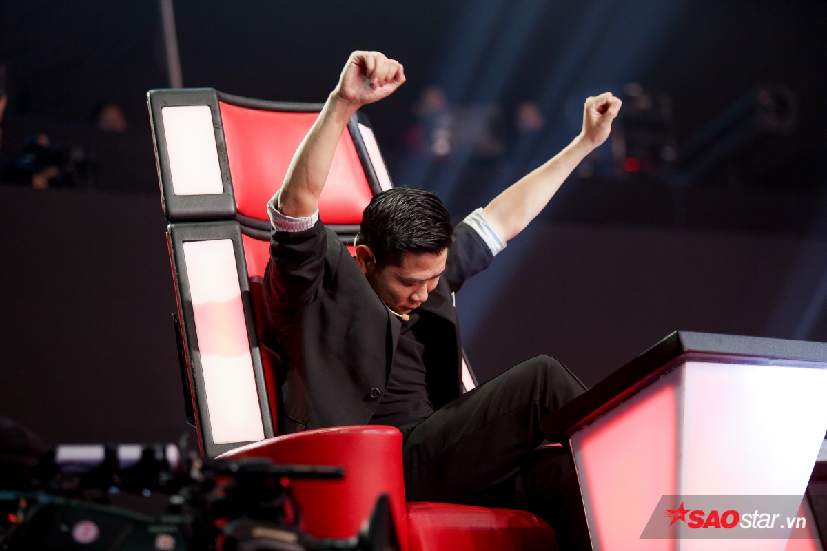 Sau khi thích thú nhún nhảy theo thí sinh, HLV Hồ Hoài Anh quyết định chọn cô về với đội của mình.
