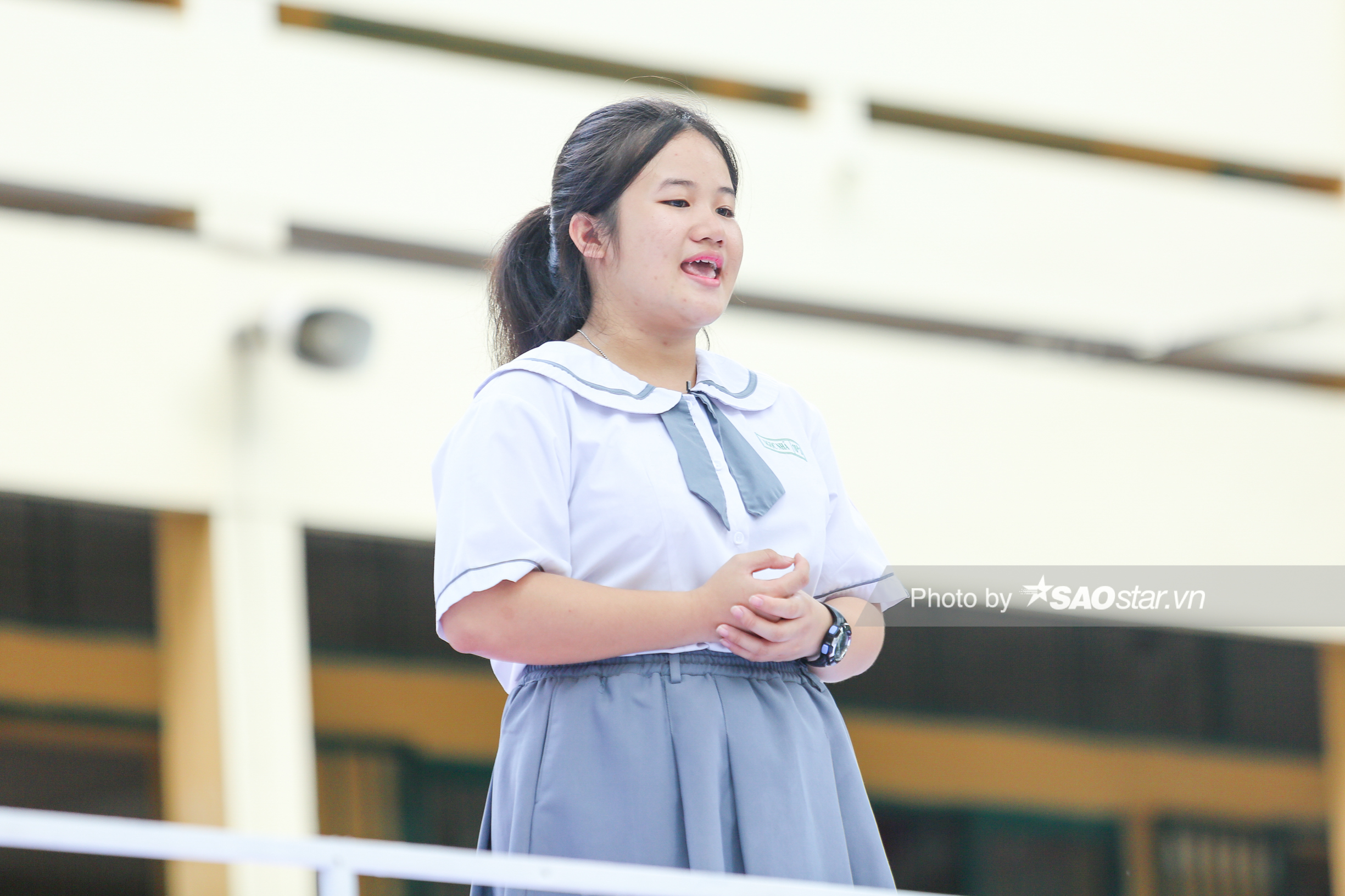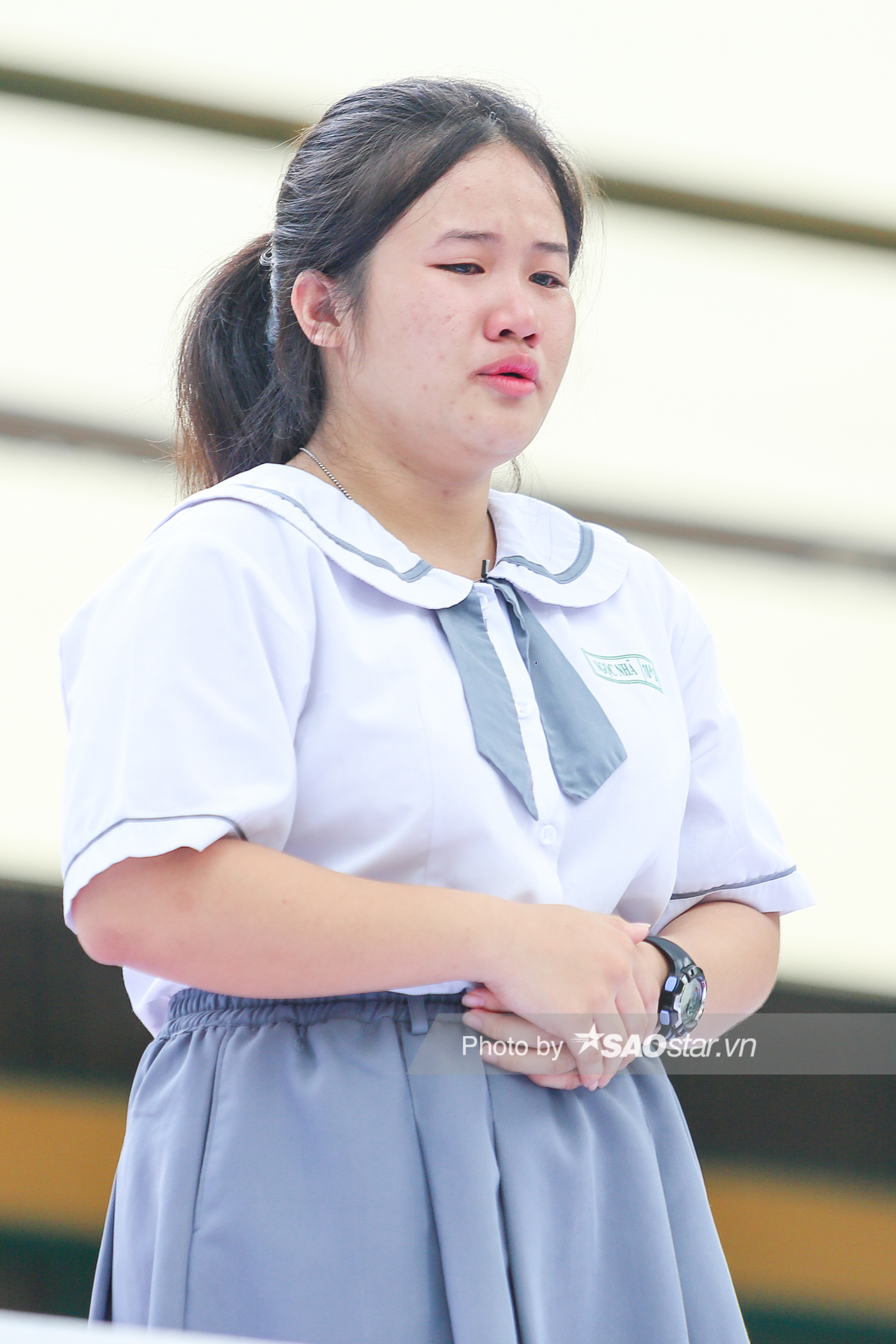 Thuật lại câu chuyện đến đây, Ngọc Nhã đã không kiềm chế được sự xúc động, hai hàng lệ đã chảy dài trên đôi má hồng hào của em. Bên dưới bục dũng khí, nhiều em học sinh đứng lắng nghe cũng đã rơi nước mắt.