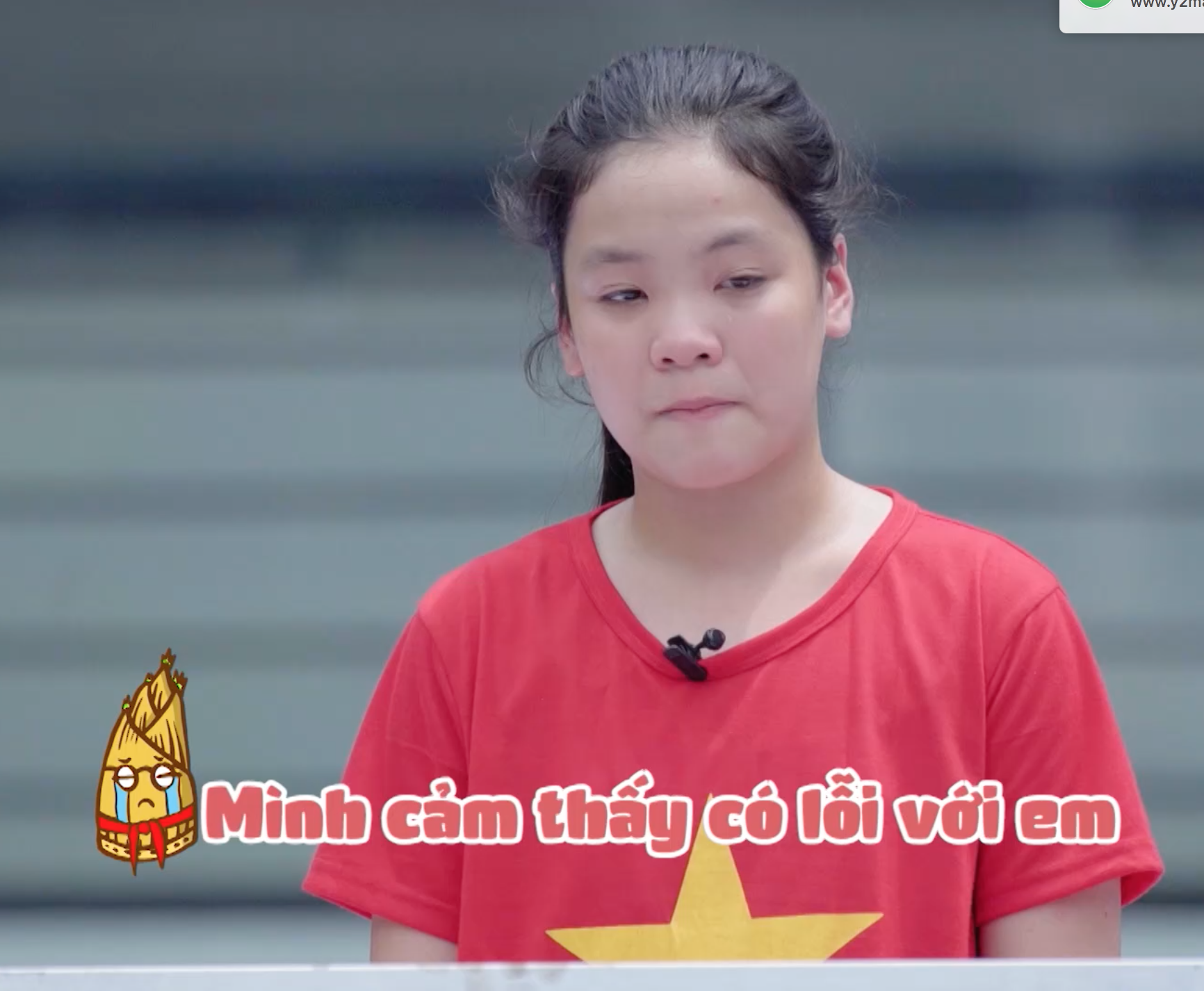 Trên bục dũng khí, gửi lời nhắn đến em gái, Phương Linh nói trong nước mắt vì nhận ra khoảng thời gian không có em bên cạnh cô bé cảm thấy rất thiếu vắng và tự trách bản thân không chăm sóc được cho em.
