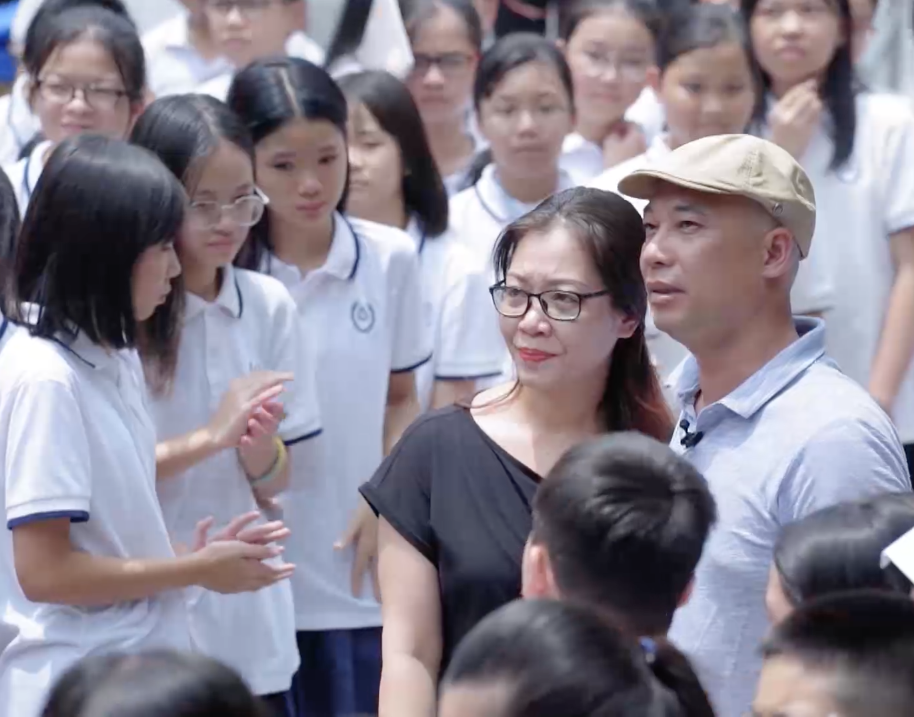 Lắng nghe câu chuyện thương cảm của gia đình Phương Linh, MC Thu Quỳnh trao cho cô bé lớp 6 một cái ôm động viên: “Chị tin nghị lực lớn của em sẽ là nguồn động lực giúp em gái vượt qua bệnh tật và sớm trở về bên gia đình”. Phần chia sẻ của Phương Linh không chỉ lấy đi nước mắt của Thu Quỳnh - Bảo Hân và rất nhiều học sinh chứng kiến, mà còn để lại trong lòng khán giả những cảm nhận sâu sắc về tình cảm gia đình và nghị lực vượt qua thử thách trong cuộc sống.